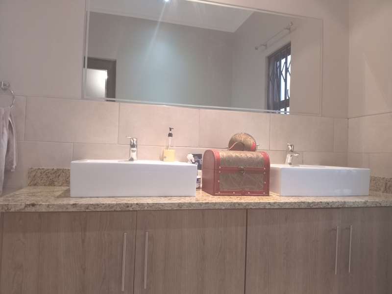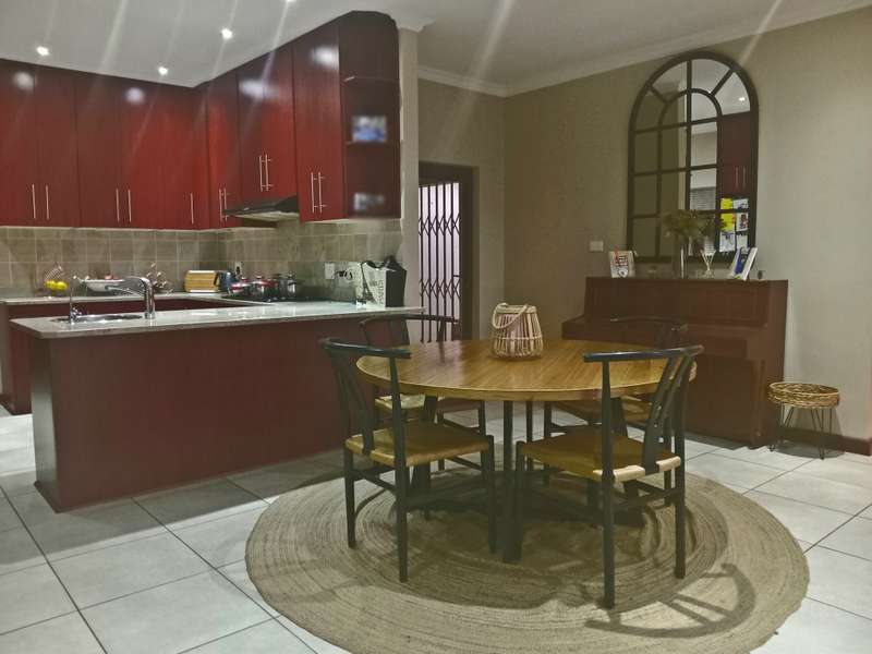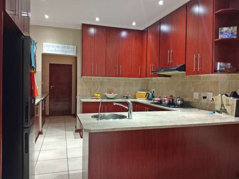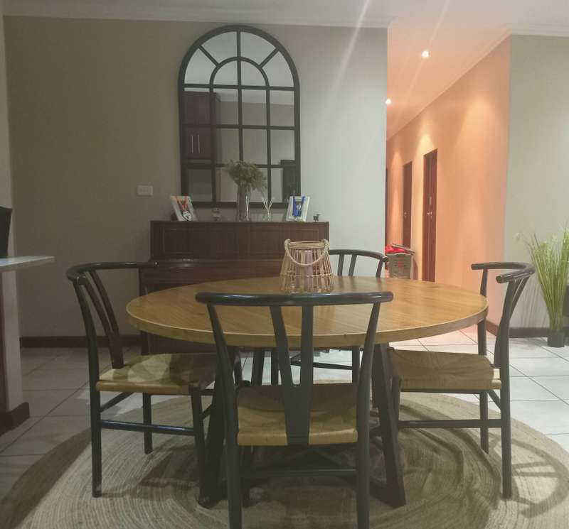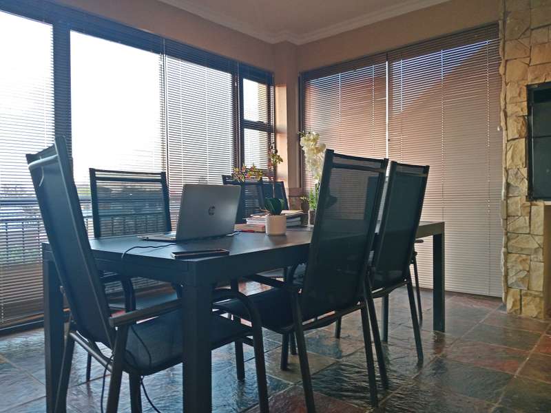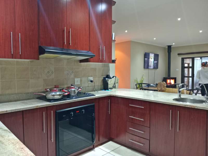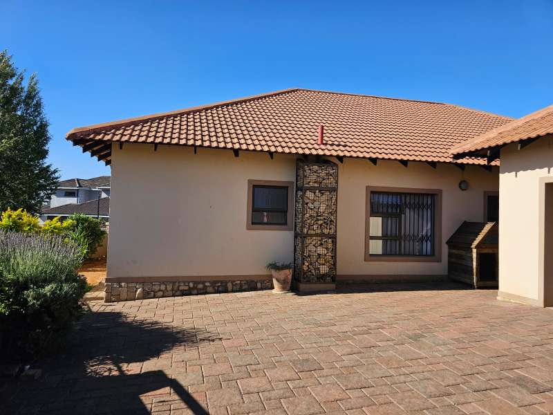 Welcome to your new beginning in this stunning family home, nestled in the prestigious Lilyvale Estate – one of the most sought-after estates in the Northern suburbs of Bloemfontein. This upmarket estate offers secure living, top-tier amenities, and a sense of community, perfect for a growing family. Step inside to find a spacious and sun-filled living area with a fireplace, to warm up those chilly winter days. The area flows seamlessly into the covered entertainment space – ideal for both relaxed family evenings and stylish entertaining. The modern kitchen is a chef’s delight, featuring ample cupboard space, granite countertops, and a separate scullery for added convenience. The home boasts 4 generously sized bedrooms, all carpeted and fitted with built-in cupboards. Fourth bedroom may be used as a study. The main bedroom includes a luxurious en-suite bathroom, while a second en-suite serves the guest bedroom. A third bathroom is well positioned to accommodate the remaining two bedrooms. Outside, enjoy year-round entertainment in the covered patio area complete with a built-in braai and sliding doors to keep the winter chill at bay. The neatly maintained garden offers ample space for kids and pets to play, and the automated double garage with a paved driveway adds to the home’s comfort and convenience. Located within a 24-hour access-controlled estate, safety is paramount – with regular patrols and strict visitor access protocols. The estate also offers a secure children’s play area, making it a haven for families. Enjoy the luxury of being just 5 minutes from Preller Mall, popular restaurants, schools, and all other key amenities. Open the curtain to a new lifestyle — your dream family home awaits in Lilyvale Estate!