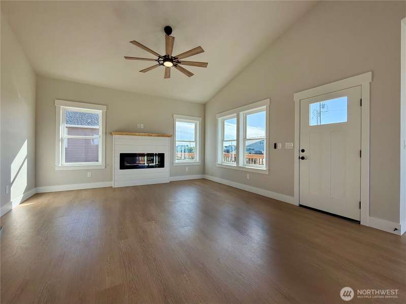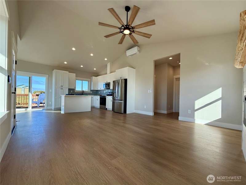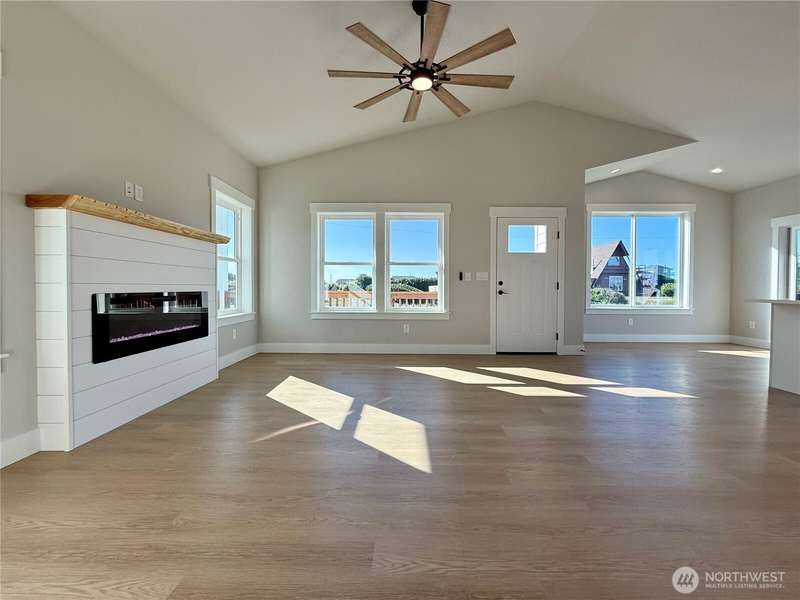Charming Beach Cottage located a mere 6 parcels from a Beach Access Trail at Ocean Shores, Washington! Listen to the ocean from this new 1,074 sf plan featuring 2 bedrooms and 1.75 bathrooms, and a 10x12 shed for toys and tools. Enter into the great room with windows galore, vaulted ceilings, luxury vinyl plank flooring, and an electric fireplace with live-edge mantle. Spacious kitchen with Quartz counters, island/breakfast bar. Dining w/door to deck. Follow the hallway to the utility/mud room, full bathroom with tiled tub surround, sunny guest bedroom, and primary ensuite complete with a walk-in closet and a 3/4 bathroom with tiled shower surround. Wrap around deck and deck off of dining. Hot/cold spigot. Fenced back yard. 8,201 sf lot.