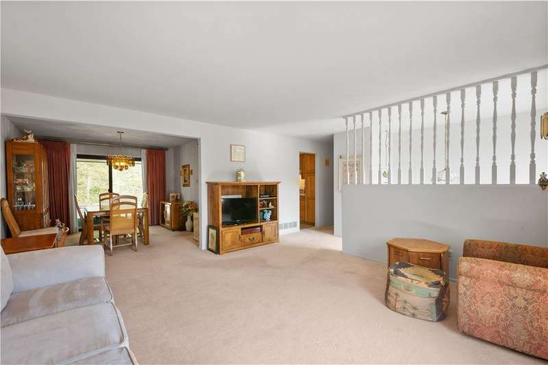 Welcome to this well maintained split-entry home located on a cul-de-sac street in the heart of Greentree. 104 Evandale includes a spacious LR and DR, connecting to the eat-in kitchen fully equipped with plenty of cabinet storage and counter space. HW floors located under the carpet on the first level. The master suite includes a large closet and a half bath. Two additional bedrooms and a full bath complete the first floor. Entertaining is a breeze with the covered back porch equipped with a gas grill and terraced yard. The finished basement includes a cozy gas burning fireplace, full bath, and seperate laundry room. Oversized two car garage with added storage. HVAC system 2024. Lovingly owned and maintained for the last 56 years.