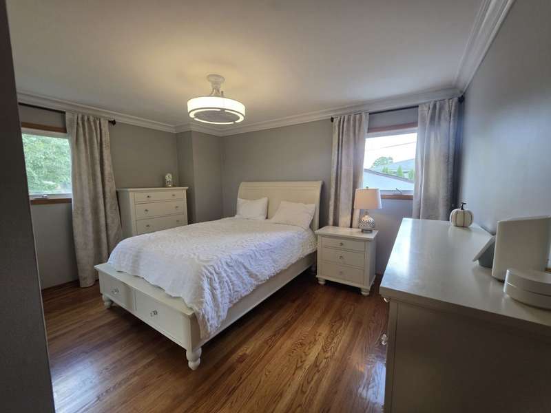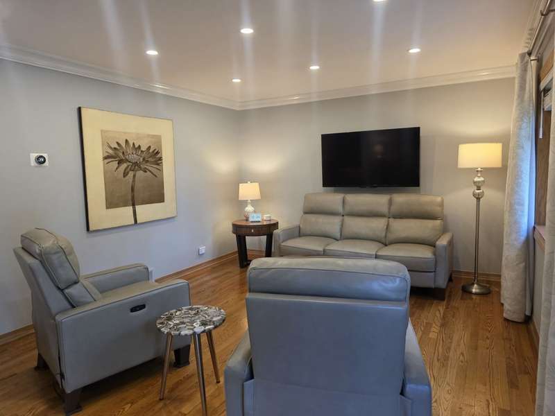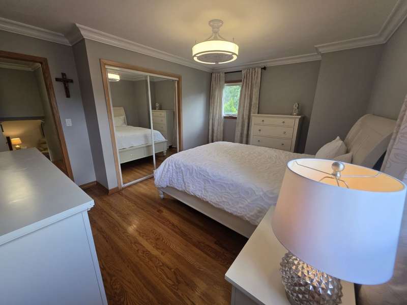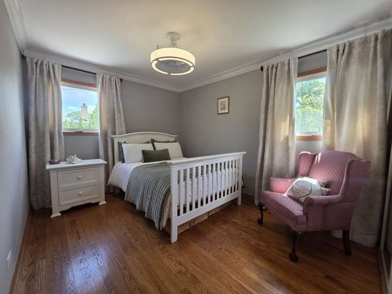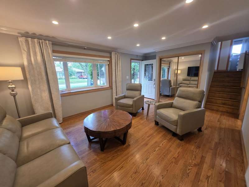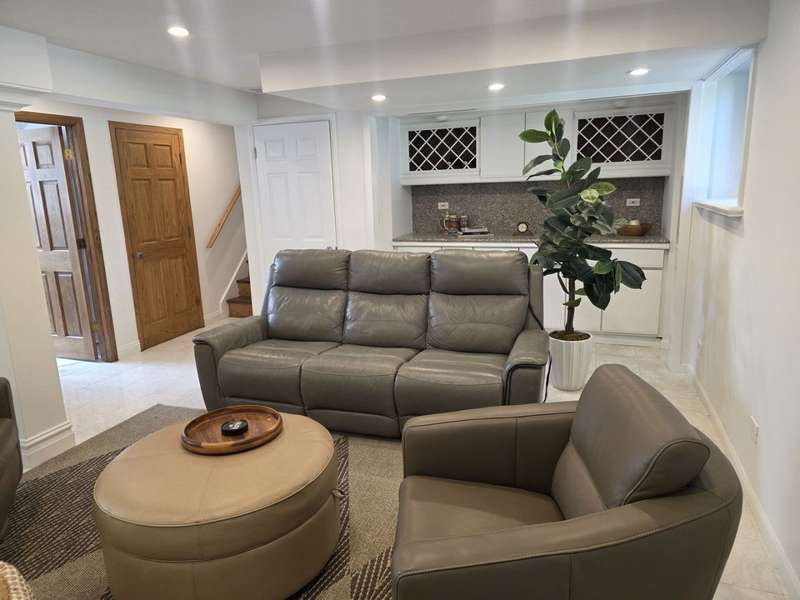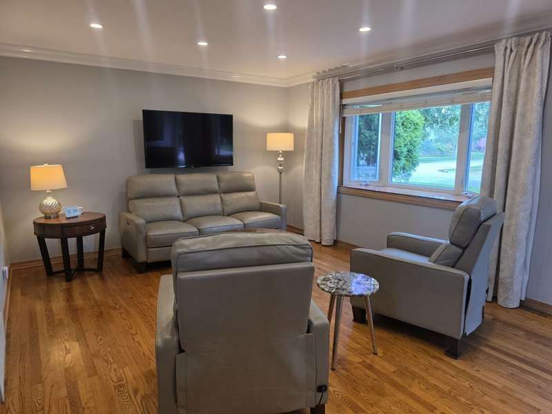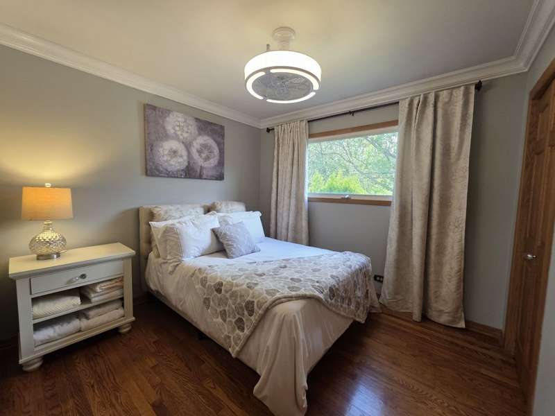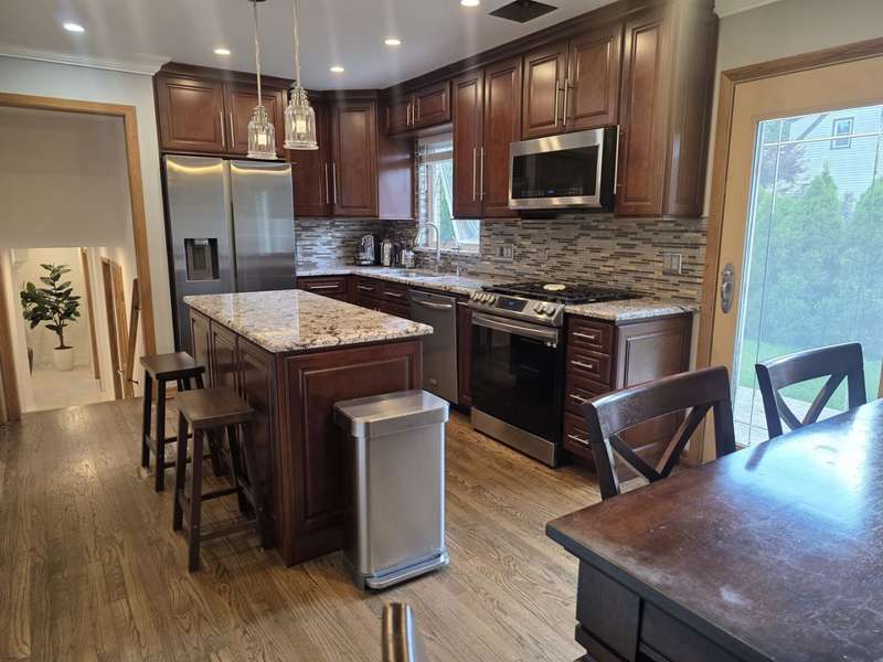 Lovely brick split level home on a corner lot, completely updated, flooded with natural light, large new kitchen with space for a dining room table boasts granite counter tops, 42 inch cabinets, island and SS top of the line appliances, hardwood floors throughout; three spacious bedrooms with large closets, completely updated bathroom with a large luxurious tub; downstairs features a newly remodeled great family room with a fire place; second bathroom and a laundry room; two car garage and a beautifully landscaped front and back yard with complete privacy makes it a urban oasis; private garden for your organic veggies and flowers; close to public transportation, expressway, shopping and great schools makes this an ideal location; available completely furnished