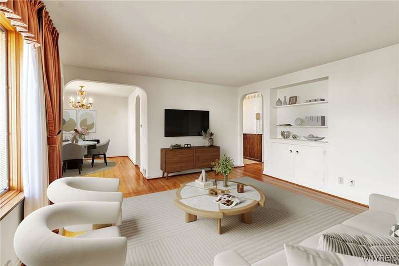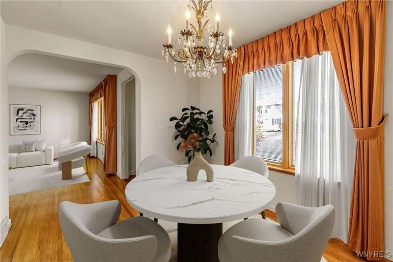 Sensational 3-bedroom Cape with sunlit rooms and spectacular spaces to entertain to host family and friends. First floor has a formal living and dining area. Bright kitchen with all appliances included.2 nice sized bedrooms and full bath. 2nd floor boasts a great place for guests with another large bedroom and half bath and loads of storage. Clean dry basement, a nice backyard and patio, along with a garage sunporch adds endless opportunities. Gleaming hardwoods, an all-neutral decor, and close to all conveniences. I'd like to Welcome you to your home! New whole house generator. Some of these rooms have been virtually staged.