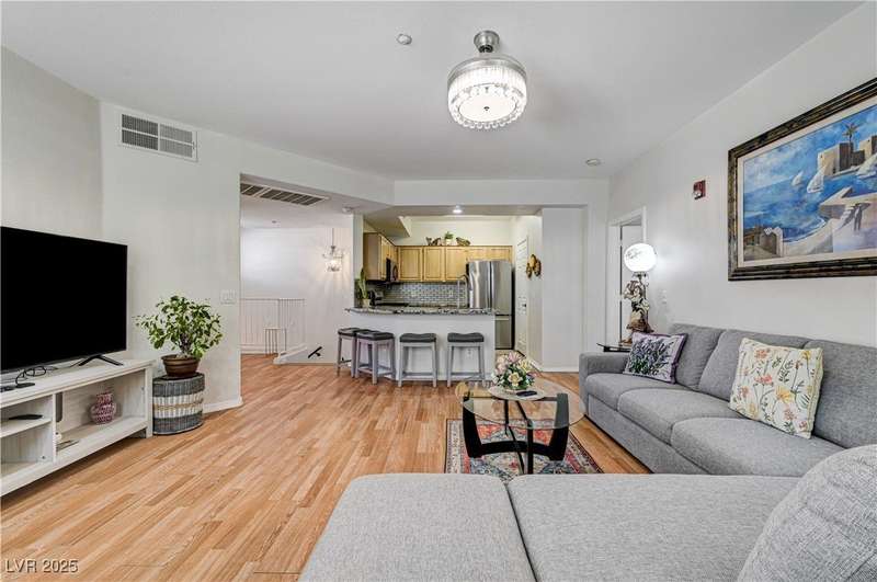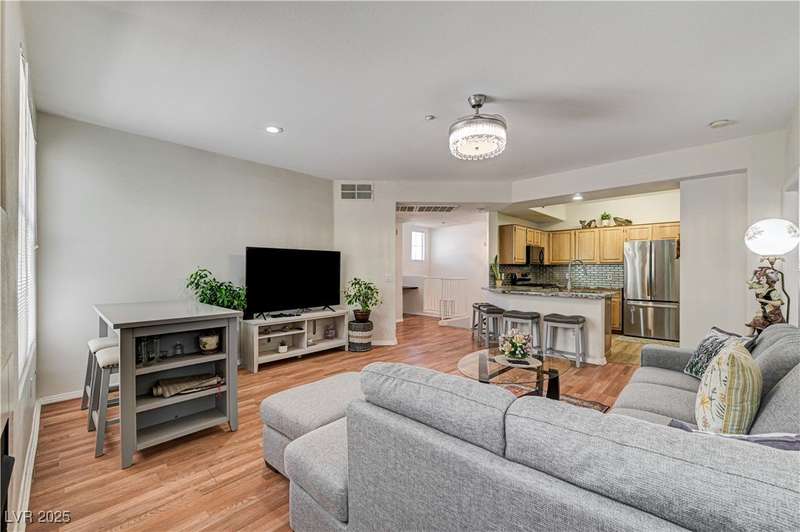 This beautifully maintained 2 bedroom, 2 bathroom home with a private 1 ATTACHED CAR GARAGE offers the perfect blend of comfort, style, and convenience. Step inside to an open floor plan filled with natural light, creating an airy and inviting atmosphere throughout. The spacious living area flows seamlessly into a modern kitchen featuring stainless steel appliances, ample granite counter space, and plenty of cabinetry, ideal for both everyday living and entertaining. Both bedrooms are generously sized with great closet space. A private balcony overlooking the community pool area, just steps away for easy access. Whether you're relaxing at home or enjoying the amenities, this condo offers a lifestyle of ease and enjoyment. You do not want to miss this! Schedule your showing now! Located in a well-maintained community close to shopping, dining, and major Las Vegas attractions. Schedule your showings now!