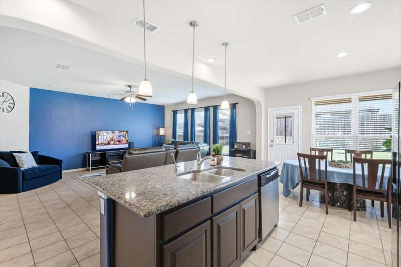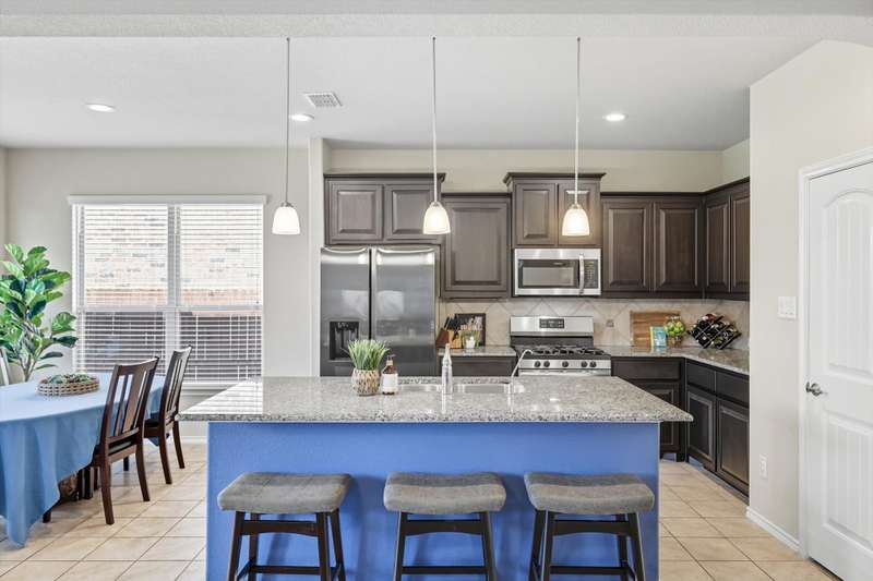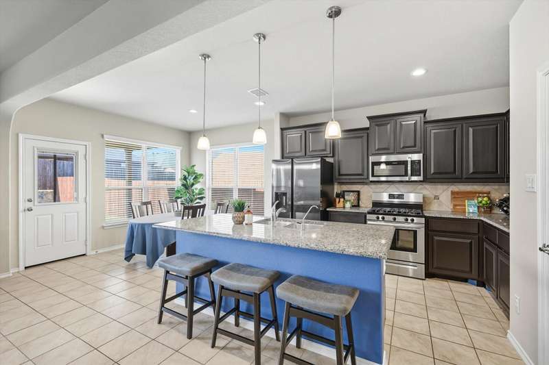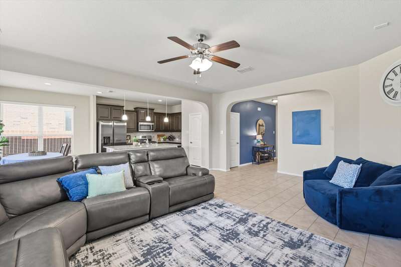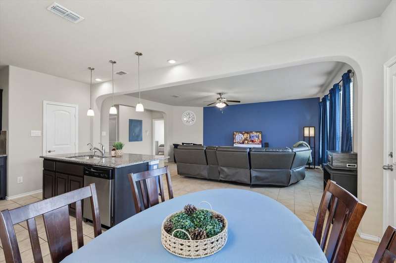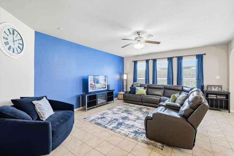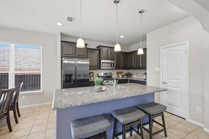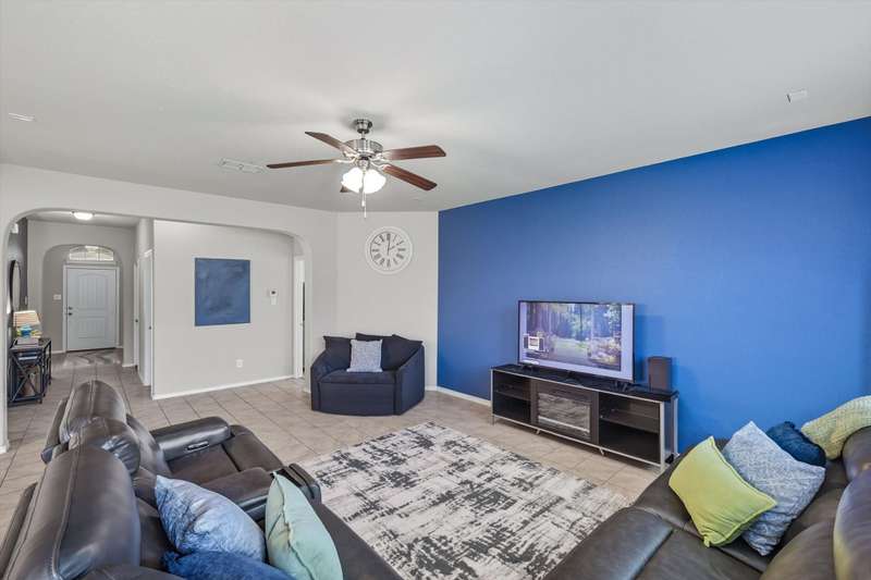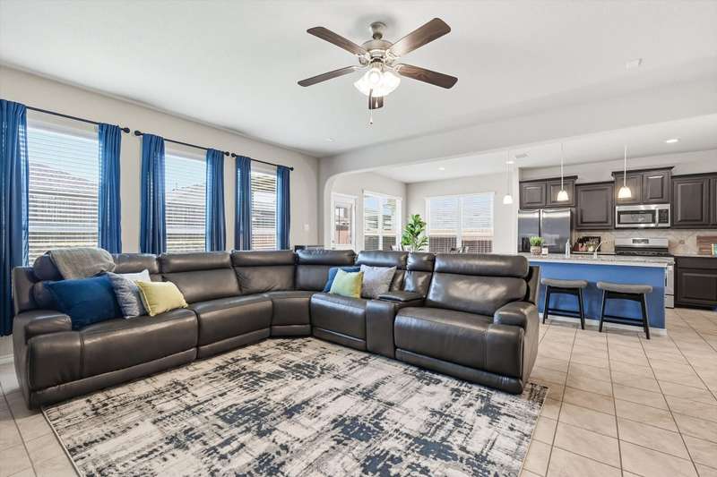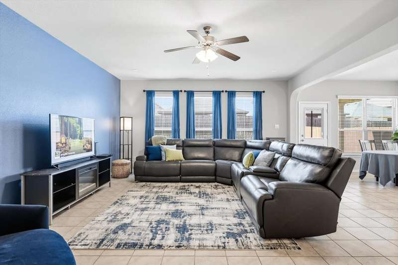 Welcome home! This light and bright 3 bedroom, 2 bath home is filled with floor-to-ceiling windows that make the whole space feel cheerful and open. The living area flows easily into the kitchen and dining, perfect for hanging out, entertaining, or just being part of the action while cooking dinner. Designer-inspired selections give the home a clean and fresh touch, while the split bedroom layout keeps things comfortable and private. The primary suite is oversized, complete with an ensuite bath and a huge walk-in closet. Out back, youll find a large yard and a covered porch thats just waiting for summer BBQs or lazy Sunday afternoons. Plus, this fun community has its own pool and playground, so theres always something to do close to home.With carpet only in the bedrooms and a 2-car garage with extra storage, this home balances easy living with a little everyday luxury.