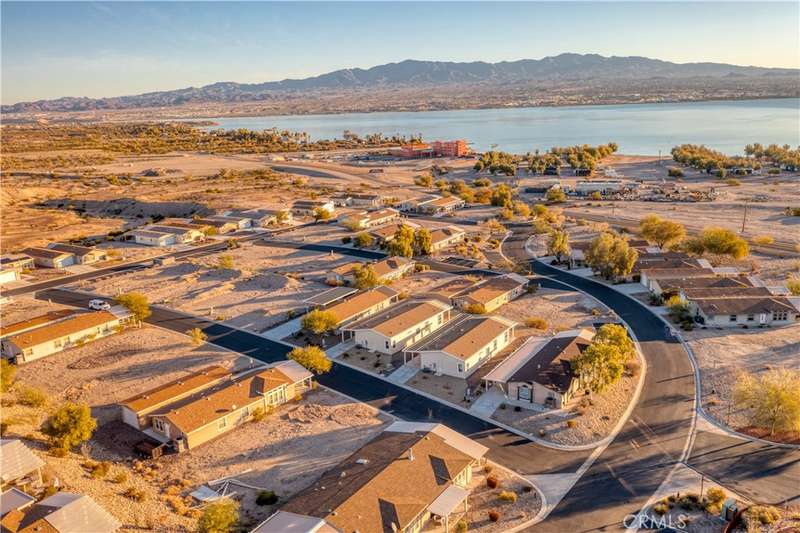 Looking to live the ultimate Lake Lifestyle, don't miss this home with lake views! Located a few short blocks from the California shoreline of Lake Havasu with 2 marinas that allow short-term and long-term slip rentals, plus miles of off-roading trails. Located in the gated community of Vista Del Lago which offers a community pool, spa, clubhouse, showers, putting green and workout room, not to mention you OWN YOUR LAND. This home has central A/C, inside laundry, a large carport, covered patio that has access through two sliders leading you into the gorgeous kitchen and den, luxury laminate flooring, amazing light that comes through the many large windows, 2 generously sized bedrooms and a main bedroom with an ensuite bathroom. The stainless steal appliances are included!