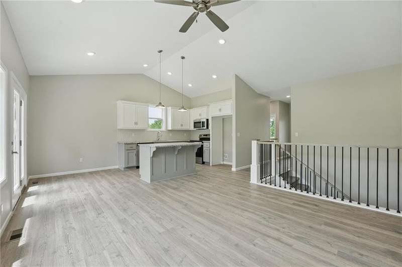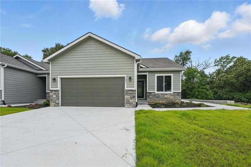 Enjoy a small-town feel just minutes from the city in the desirable Highland Ridge community. This 3-bedroom, 3-bath ranch villa offers an open-concept floor plan with generously sized bedrooms and a finished lower level perfect for additional living or entertaining. The deep garage allows space for multiple vehicles, storage, or recreational equipment.Luxury finishes throughout include granite countertops, tile backsplash, soft-close cabinets and drawers, and floor-to-ceiling tile in the primary shower. 10-foot ceilings and oversized windows provide excellent natural light. The home sits on a generous, mature lot, with upgrade-level features already included at no added cost a must-see value at this price point.Conveniently located: 20 minutes to Downtown KC 5 minutes to The Legends for shopping and entertainment 15 minutes to the Overland Park business corridor, Garmin HQ, and PanasonicComfort, quality, and convenience come together here.