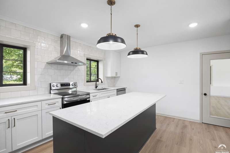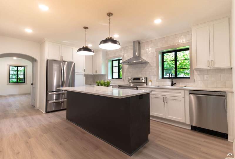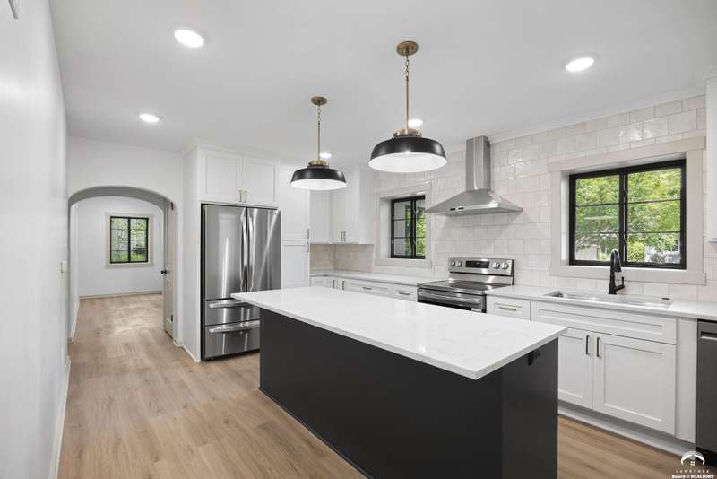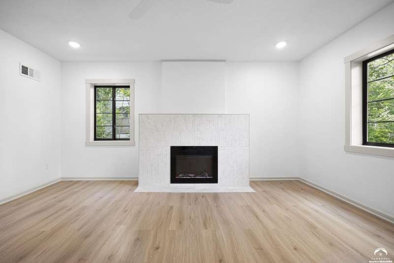 Fabulous complete renovation, done with care and precision by one of the best reno crews in the area. With top quality materials and workmanship, and in a highly sought after neighborhood, this lovely home is perfect for entertaining, and has a characteristic Lawrence style. Sitting in the shadow of Mount Oread, and within easy reach of shopping and commuting, this remarkable property is ideally located in the heart of Lawrence, figuratively and literally. With professionally designed interiors, and all renovation work done with permitted, licensed contractors (Electric, HVAC, Plumbing, Roof and General Contractor), You can rest easy in the quality and usability of this home. With 2 entry/exit doors for each level, and laundry and kitchen facilities on each, discreet living areas are possible, ideal for family, roommates, or investment potential. Storm safe due to the complete concrete construction, you can enjoy this wonderful home with confidence. Make your appointment to see it today.
