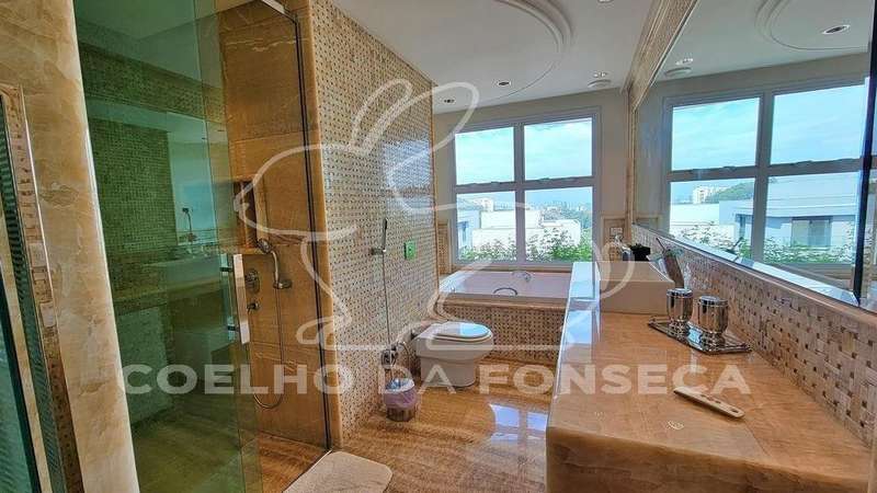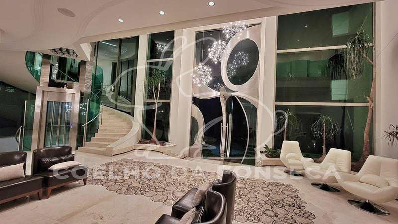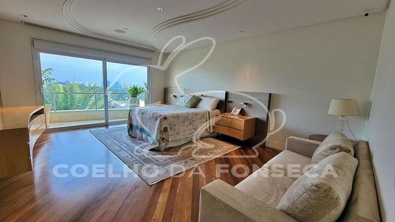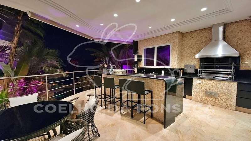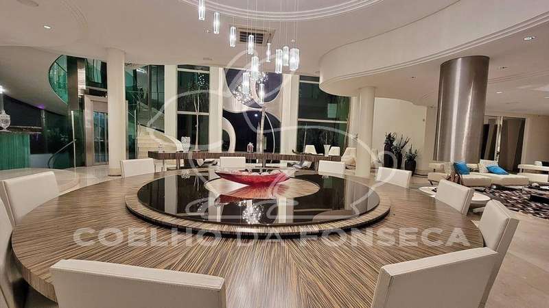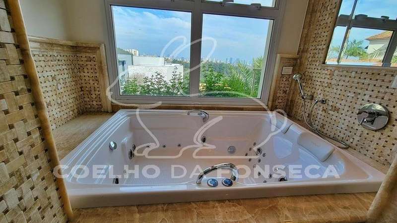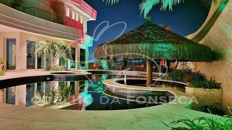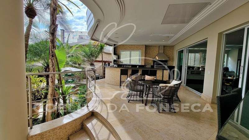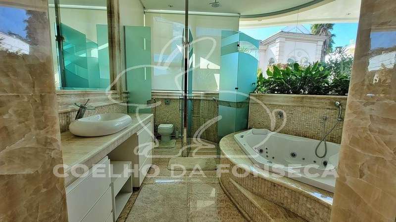 Casa no condomínio TAMBORÉ X, com 1680m² área construída, 6 dormitório(s), 6 suíte(s), 8 vaga(s), 10 banheiro(s), piscina, esquina, escritório, sauna, mobiliado (a), ar condicionado, dep. de empregados, elevador, aquecedor solar, pé direito duplo.