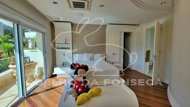 No piso superior encontram-se as 5 suítes máster com closet e hidromassagem, sala íntima, copa de apoio, brinquedoteca