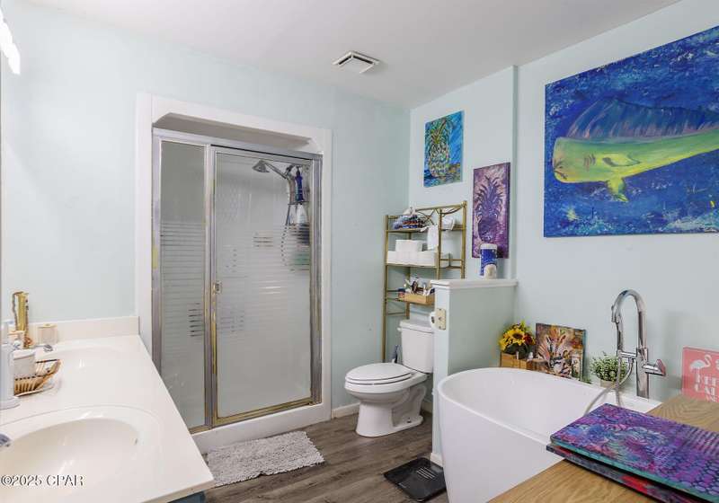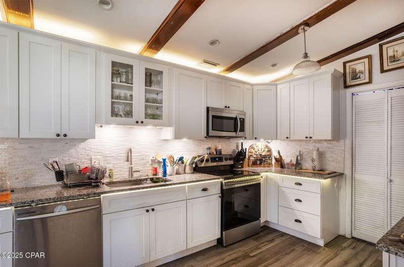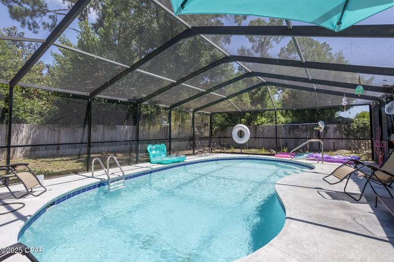 An updated pool home with proven $2,900/month rental income and a prime location -- perfect for investors or anyone looking to enjoy the beach lifestyle! This beautifully updated 4-bedroom, 2-bath home in the desirable Woodlawn subdivision offers modern upgrades and an unbeatable location close to everything Panama City Beach has to offer. Renovations include commercial-grade LVP flooring, a fully updated kitchen with new appliances, counters, and backsplash, plus a new HVAC system, water heater, and a resurfaced pool with a new pump.The screened-in, inground pool and fenced backyard create the ideal space to relax or entertain. Located in a golf-cart-friendly neighborhood with easy access to the beach, Navy base, shopping, dining, and top-rated schools like Breakfast Point Academy and Arnold High.With its open, inviting layout and excellent rental history, this property is move-in ready and offers strong investment potential. Centrally situated between Panama City and Panama City Beach, this home is ready for its next owner -- schedule your showing today!