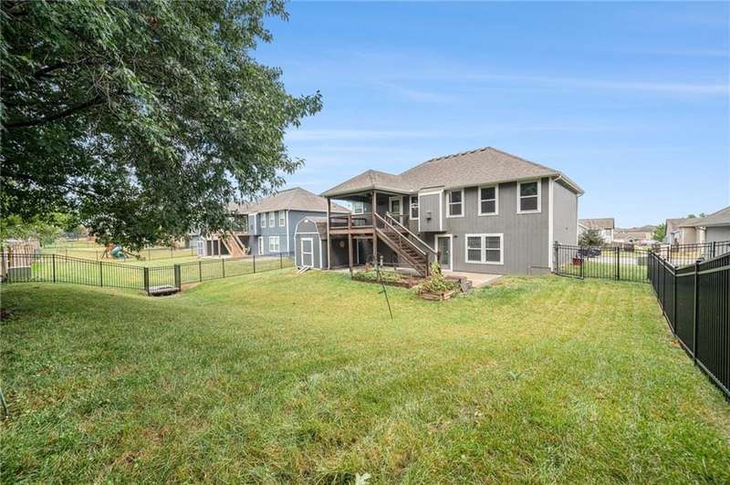 Custom build with tons of upgrades which makes this home better than buying new. 4 bedrooms, (3 main level & 1 lower level) 3 bathrooms, laundry on main level + large family room on lower level. At build seller added hardwood floors in great room & hallways & tile floors from patio door to garage entry in lower level. Seller extended lower patio & added wrought iron fence & stairs to deck. Seller upgraded carpet/pad as well as appliances & lighting package. Home also includes custom shades, some tinted windows, garage door openers & 10x12 storage shed. See Features & Upgrades list for more detail. Home is convenient to shopping, highways & airports.