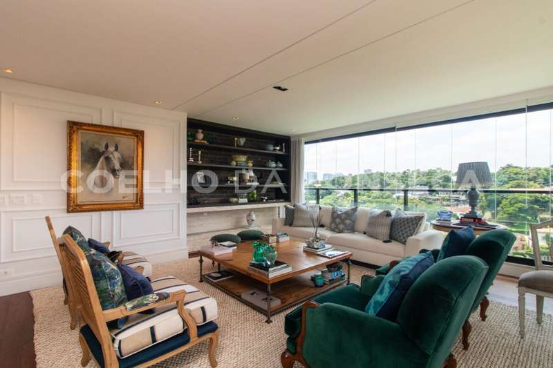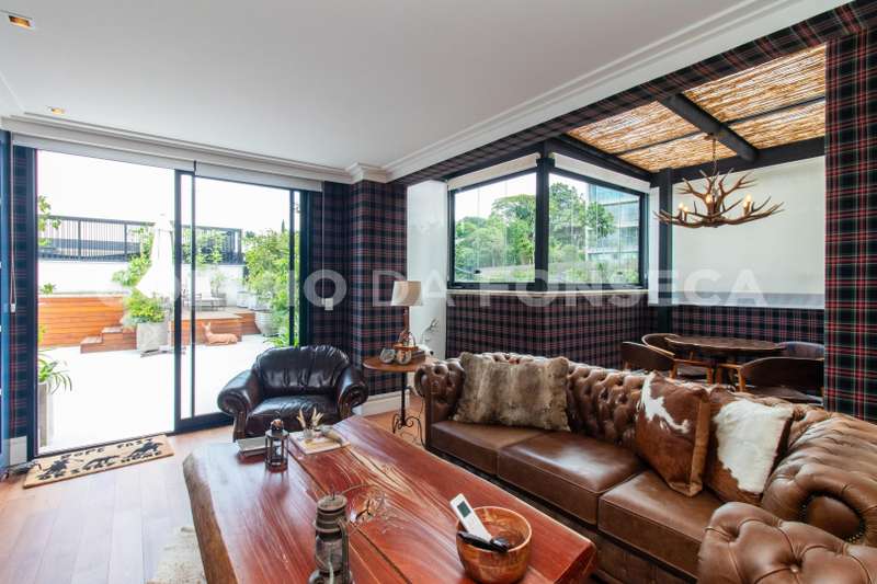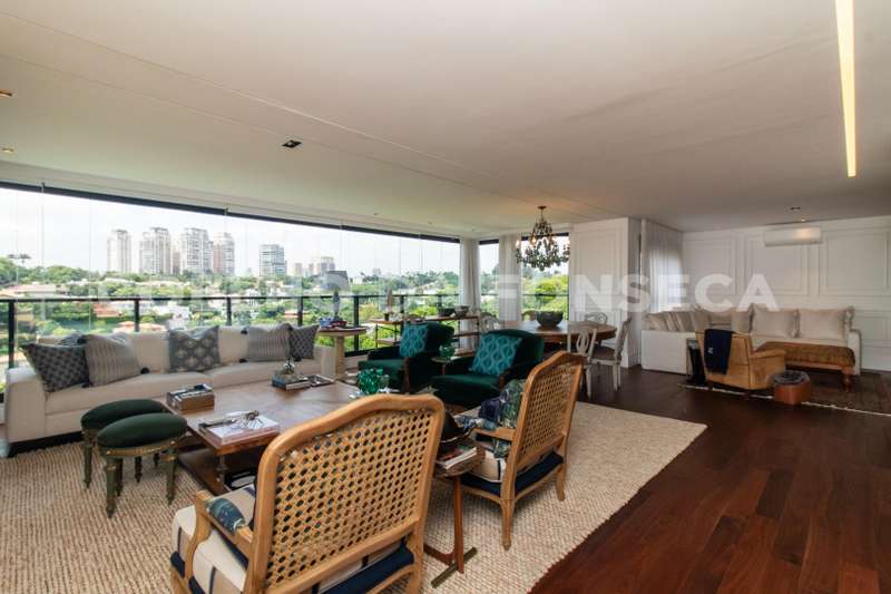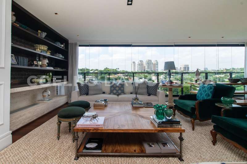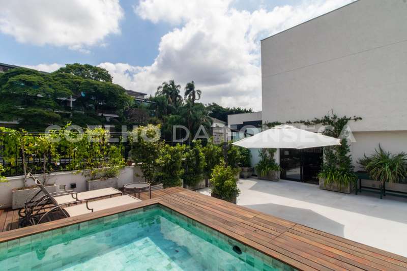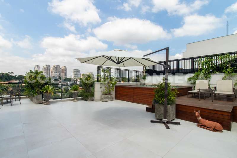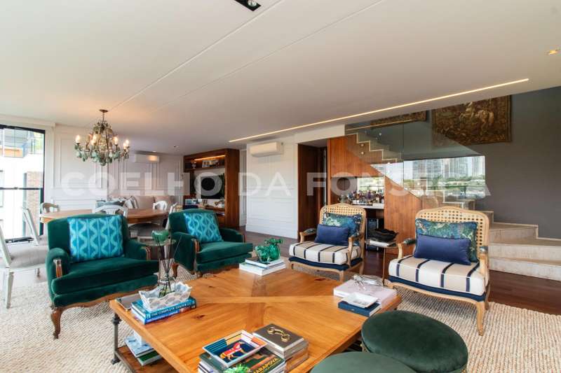 Cobertura duplex localizada em região nobre no Cidade Jardim, com vista privilegiada para o verde com espaço gourmet, sala íntima, solarium e piscina privativa. Apresenta living com três ambientes, sendo eles sala de estar, sala de jantar e sala de TV, com vista para o verde, repleto de iluminação e ventilação. Há, também, uma cozinha equipada e decorada com sala de almoço. A parte íntima dispõe de três dormitórios, sendo uma suíte master com walk-in closet. O apartamento conta com lavabo no piso inferior e superior. Condomínio com localização próximo de hospitais, supermercados e boas escolas, com fácil acesso à Ponte Cidade Jardim e à Marginal Pinheiros.