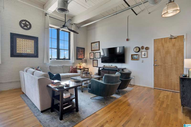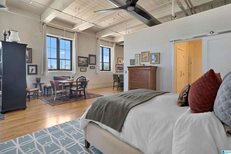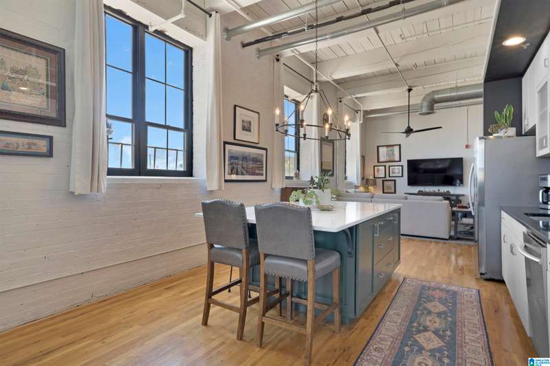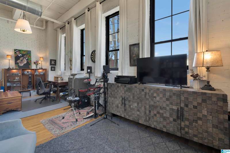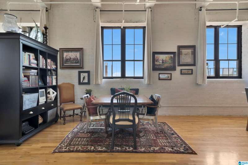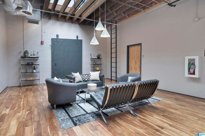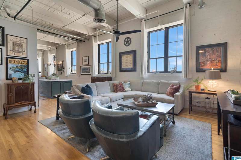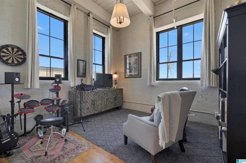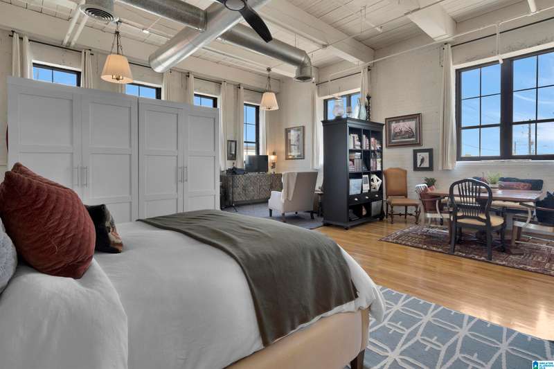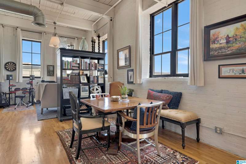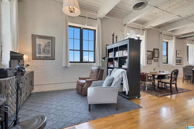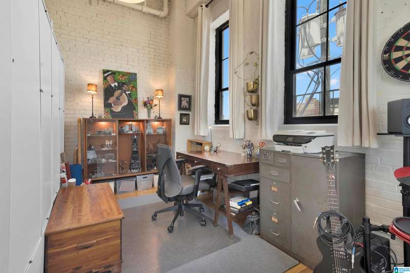 Nestled in the vibrant Loft District, Gallery Lofts offers a unique blend of historical charm, industrial vibes & modern convenience. This unit features stunning view of historic Sloss Furnaces Nat Historic Landmark, warm hardwood floors, captivating exposed brick walls, high ceiling with massive beams, & expansive windows that flood the space with natural light. The loft's flexible layout provides a spacious open plan, allowing you to customize the space to suit your individual needs. Whether you desire a dedicated home office or additional space for entertaining, this loft offers the versatility to accommodate your vision. The unit includes a secure parking space in a detached garage with additional storage option. Step outside your door & immerse yourself in a vibrant community with renowned restaurants, historical theatres & music venues, McWane Science Center, coffee & pastry shops, & exciting nightlife. Minutes to UAB & the medical and financial districts.