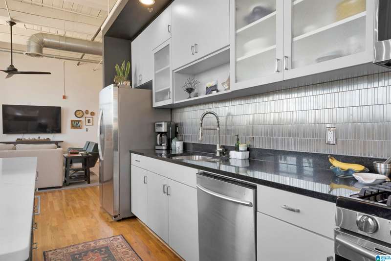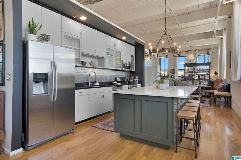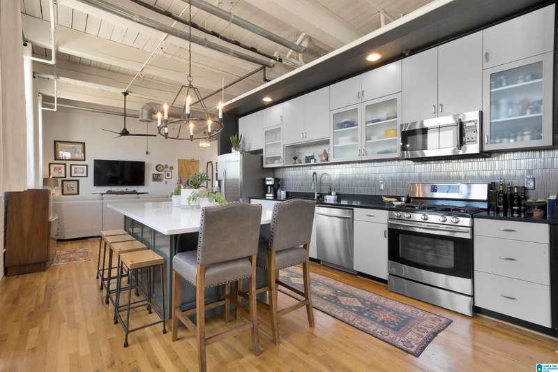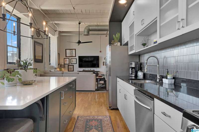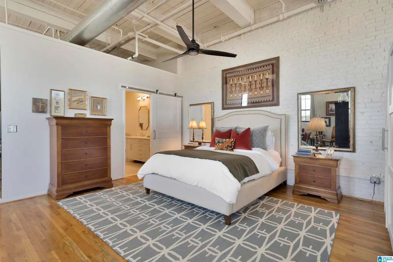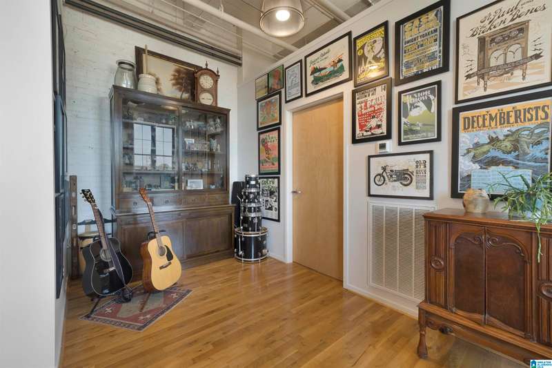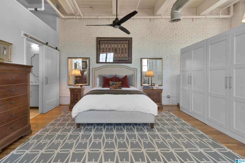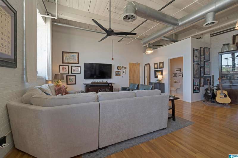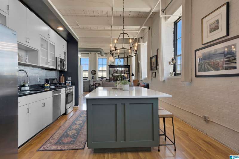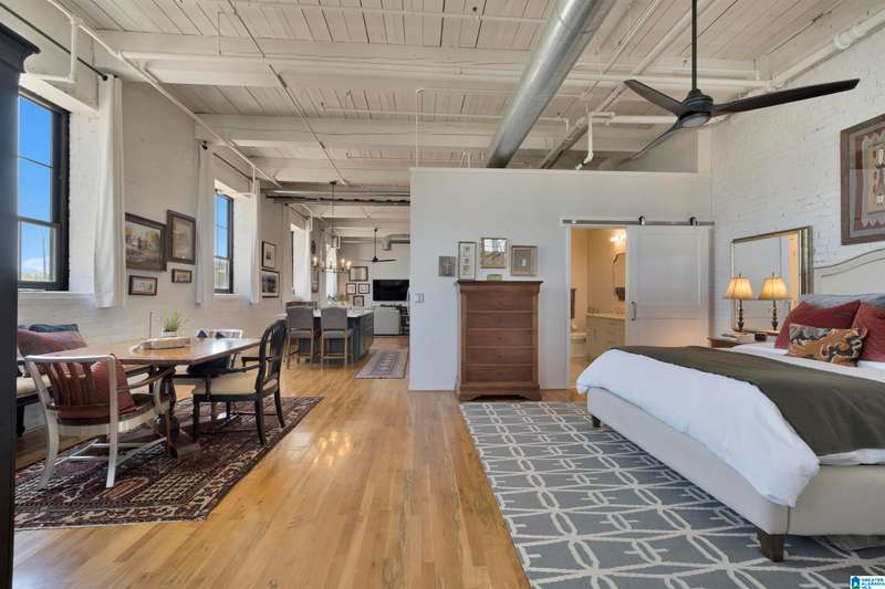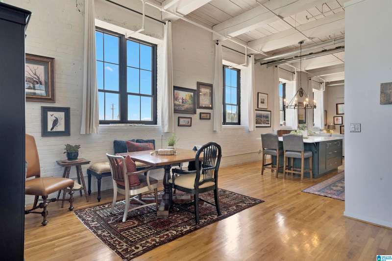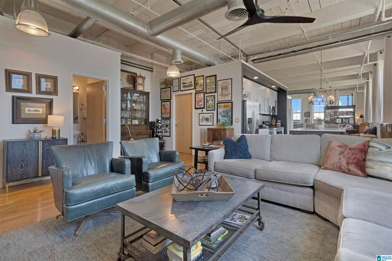 Nestled in the vibrant Loft District, Gallery Lofts offers a unique blend of historical charm, industrial vibes & modern convenience. This unit features stunning view of historic Sloss Furnaces Nat Historic Landmark, warm hardwood floors, captivating exposed brick walls, high ceiling with massive beams, & expansive windows that flood the space with natural light. The loft's flexible layout provides a spacious open plan, allowing you to customize the space to suit your individual needs. Whether you desire a dedicated home office or additional space for entertaining, this loft offers the versatility to accommodate your vision. The unit includes a secure parking space in a detached garage with additional storage option. Step outside your door & immerse yourself in a vibrant community with renowned restaurants, historical theatres & music venues, McWane Science Center, coffee & pastry shops, & exciting nightlife. Minutes to UAB & the medical and financial districts.