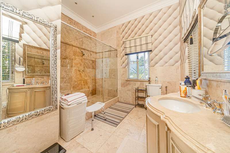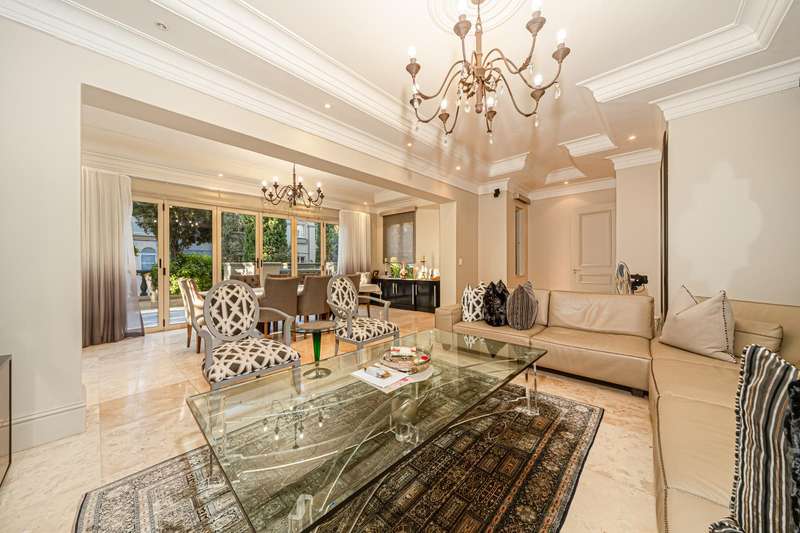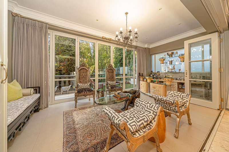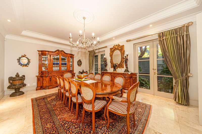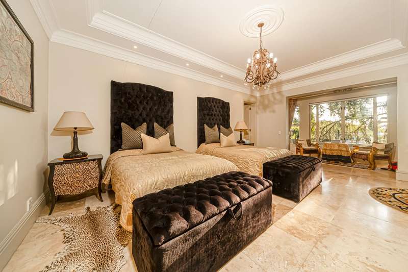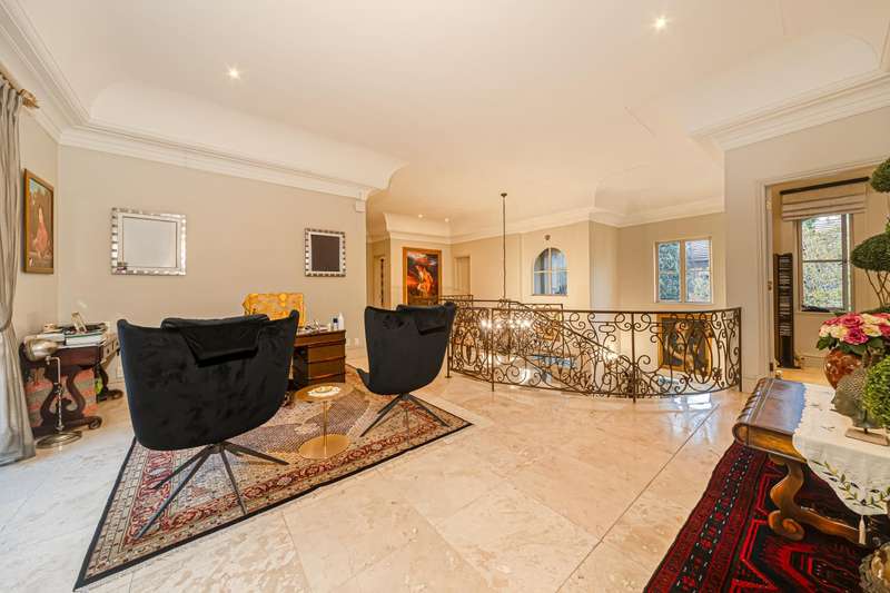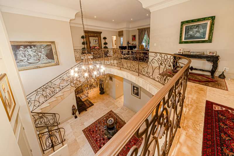 OPEN TO SERIOUS OFFERS! Exceptional Value | Timeless French-Inspired Elegance in Hyde Park Step into refined luxury, with palatial architecture, inspired by classic French ch?óteau design. Situated in an exclusive 4-home cluster development in a secure Hyde Park cul-de-sac. Designed for discerning buyers, who value grand proportions and architectural sophistication. This home offers a lifestyle of elevated comfort and effortless entertaining. A dramatic triple-volume entrance hall introduces a series of elegant spaces. The stylish home offers natural flow between formal and informal living areas, seamlessly connected by custom sliding doors with each cosy morso fireplaces and opening onto charming paved terraces, offering versatility for intimate family living or large-scale gatherings. Downstairs; Grand facades with arched windows and stately proportions displayed in the formal dining room accommodating a 12-seater table. Elegant lounge and relaxing pause area, family TV/dining room create versatile living zones all flowing onto light filled terraces. Designed for gracious entertaining and family living. Gourmet open-plan kitchen with: A mobile center island. Eat-in dining area. Separate scullery. Ample cabinetry and prep space The ground-floor en-suite guest bedroom, offers a harmonious blend of indulgence, comfort, and privacy Upstairs; A sweeping staircase leads to upper-level accommodation and study arriving at a formal study on the landing, ideal for remote work or Pajama lounge, inviting bespoke finishes and handcrafted detailing throughout Opulent main suite with: His & hers bathrooms. Extensive cupboard space. Private, serene ambiance. Three additional spacious bedrooms upstairs: Two en-suite. Each bedroom features decorative wrought iron accents and Juliet balconies Additional features; Triple garage with direct internal access Double staff suite. Optimum security in a cul-de-sac road, 24-hour manned security within a private, gated setting Power back up A true Hyde Park masterpiece?Çönow launched at exceptional value