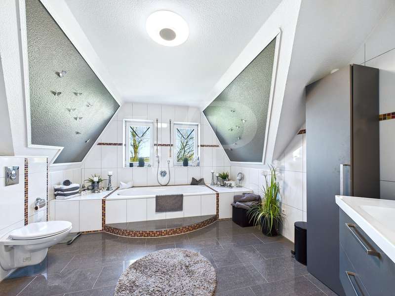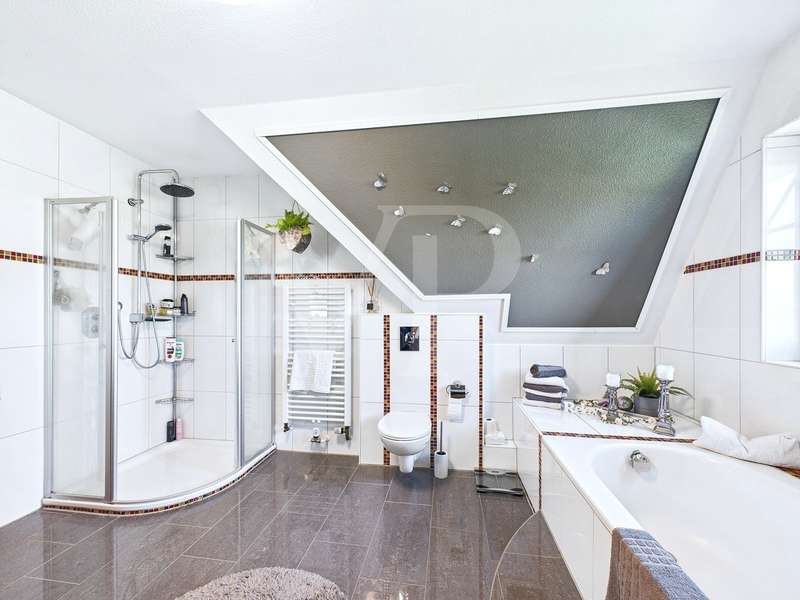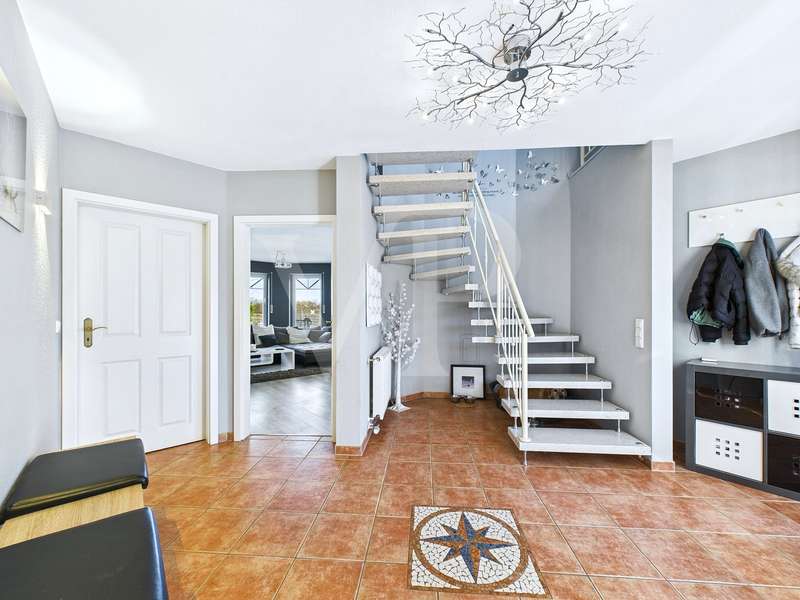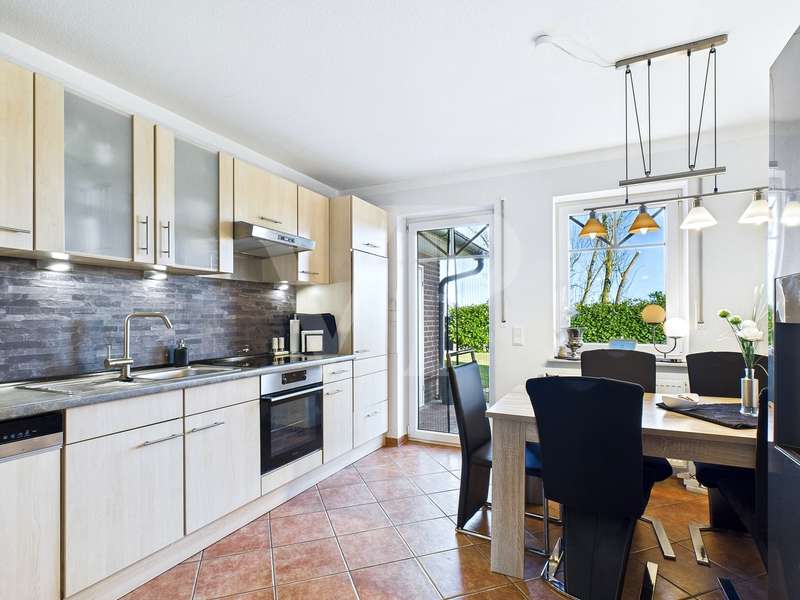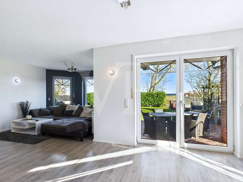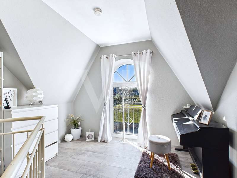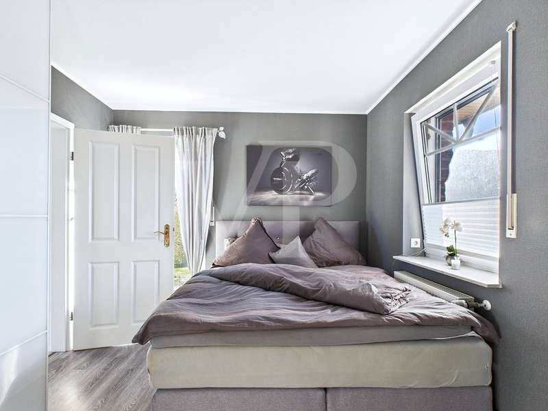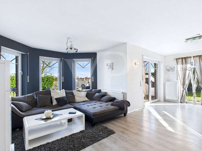 This well-designed detached house offers approx. 147.22 m² of living space and approx. 54 m² of usable space, providing a generous amount of room for families or couples with space requirements. The well thought-out floor plan ensures a functional and pleasant living atmosphere. The practical room layout and the well thought-out living concept make the house a perfect home for families, where everyone can find their own space and feel completely at ease. The property has a total of six rooms, including five bedrooms. Four of the bedrooms are located on the second floor, while another bedroom is directly adjacent to the living area on the first floor - ideal as a guest room, office or for intergenerational living. The large bathroom on the upper floor is fully equipped with a shower and bathtub. Particularly noteworthy is the view from the bathtub directly onto the adjacent fields. The approx. 857 m² plot is located directly on the edge of the field and offers plenty of space for outdoor recreation. The garden is equipped with atmospheric lighting, which creates a pleasant atmosphere, especially in the evening hours. A pool complements the outdoor area and invites you to linger on warm days. Further features -Spacious garage directly accessible from the utility room -Quiet cul-de-sac location at the end of a residential street -Solid construction with attractive architecture -Versatilely usable, converted attic The house is located in Friedeburg-Horsten and combines a residential area close to nature with good accessibility. Have we piqued your interest? We would be happy to show you the property in person.