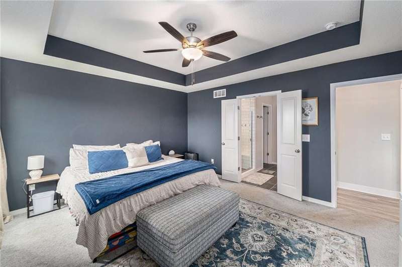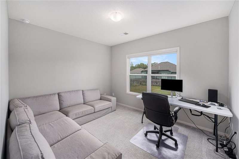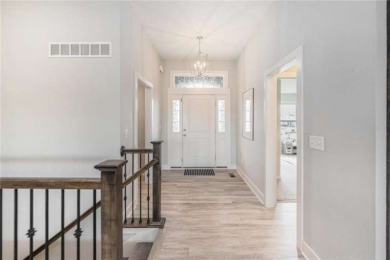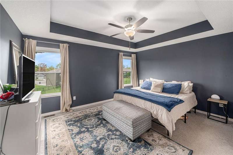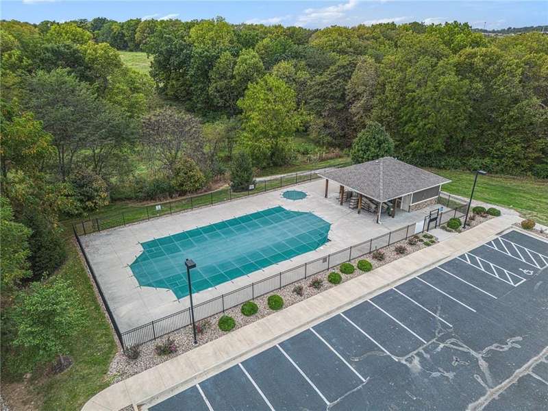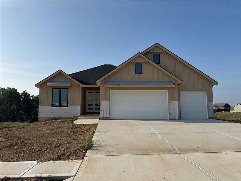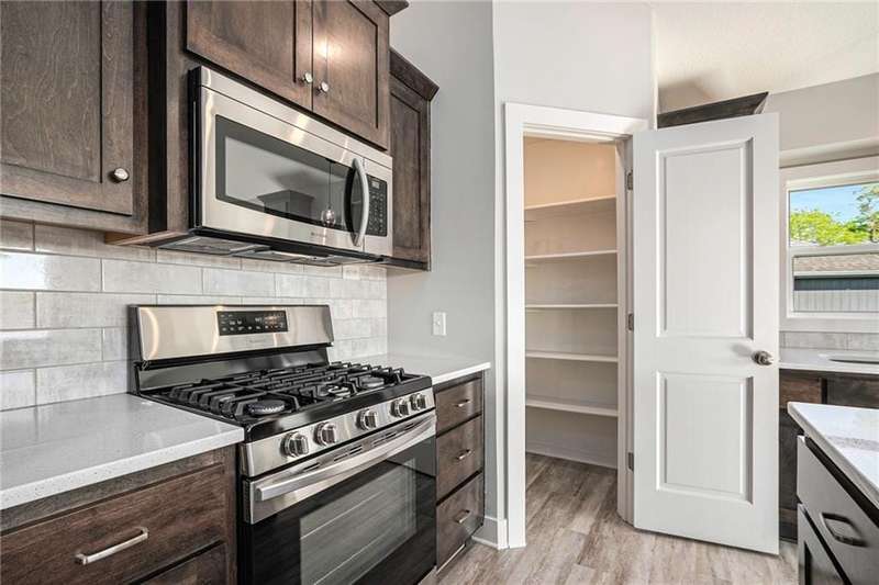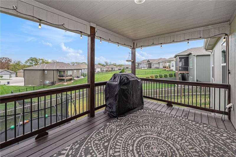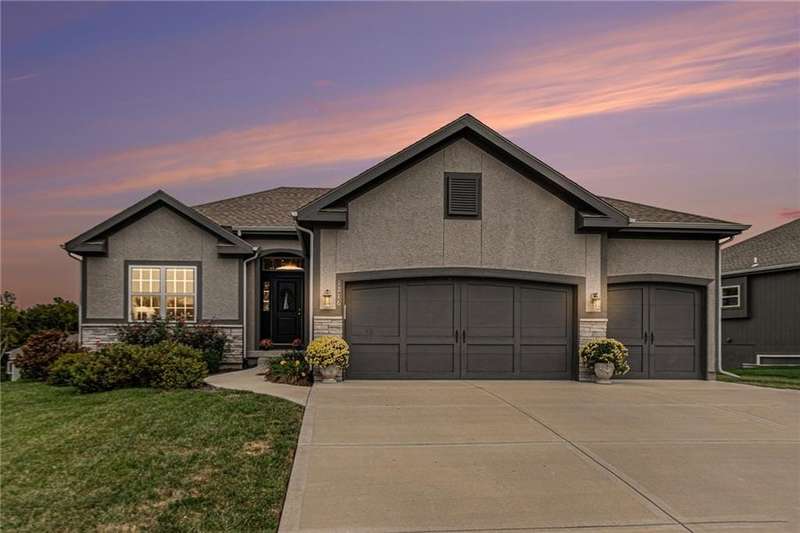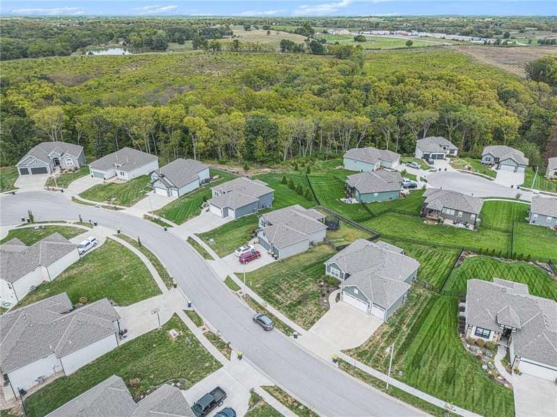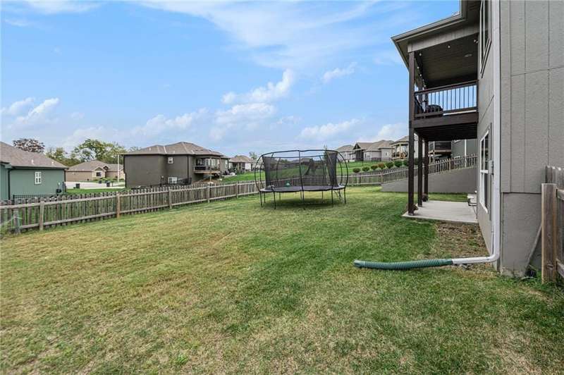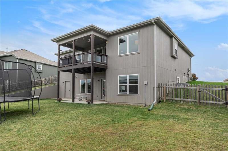 This beautiful 4 bedroom, 3 bath reverse 1.5 story home, offers over 2,900 sq ft of finished living space in a desirable Woodland Creek neighborhood with a community pool. The open concept main level features a spacious living room with a gas fireplace and plenty of natural light. The modern kitchen includes quartz counters, custom cabinets, a large island, walk-in pantry, gas stove, and stainless steel appliances. Adjacent to the kitchen is an eat-in area with access to a covered back deck that is perfect for relaxing or entertaining. The master suite on the main floor includes a tray ceiling, large walk-in closet, and private bath with dual sinks and a walk-in shower. Also on the main level are a second bedroom, full bath, and laundry room. The finished walkout lower level adds two more bedrooms, a full bath, a second kitchen area with laundry hookups, and flexible living space with access to a fenced backyard and patio that is ideal for kids, pets, or outdoor fun. A spacious 3 car garage and extra storage space complete this move-in ready home.Located in a highly sought-after neighborhood with easy access to shopping, dining, parks, top-rated Smithville schools, and just minutes from Smithville Lake and bike trails, this home combines comfort, style, and convenience. Dont miss your chance to see it!