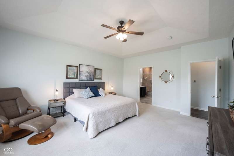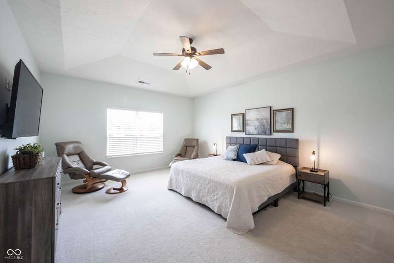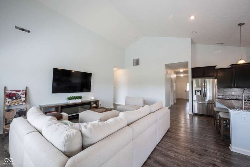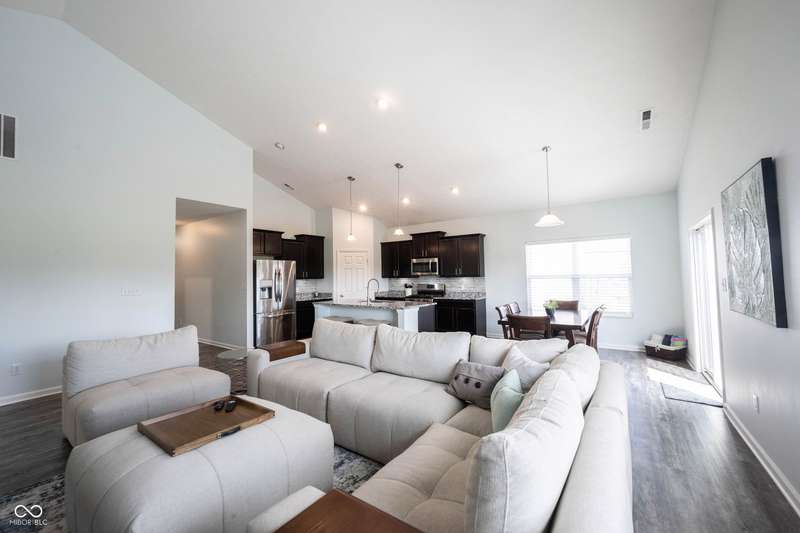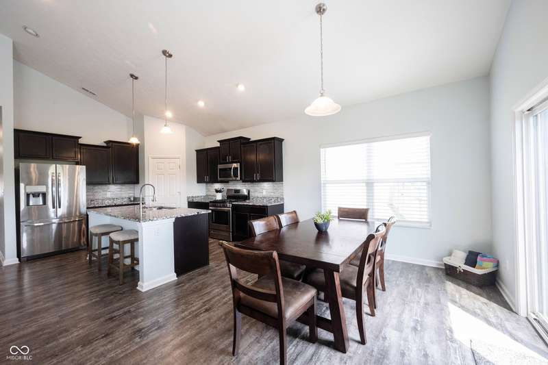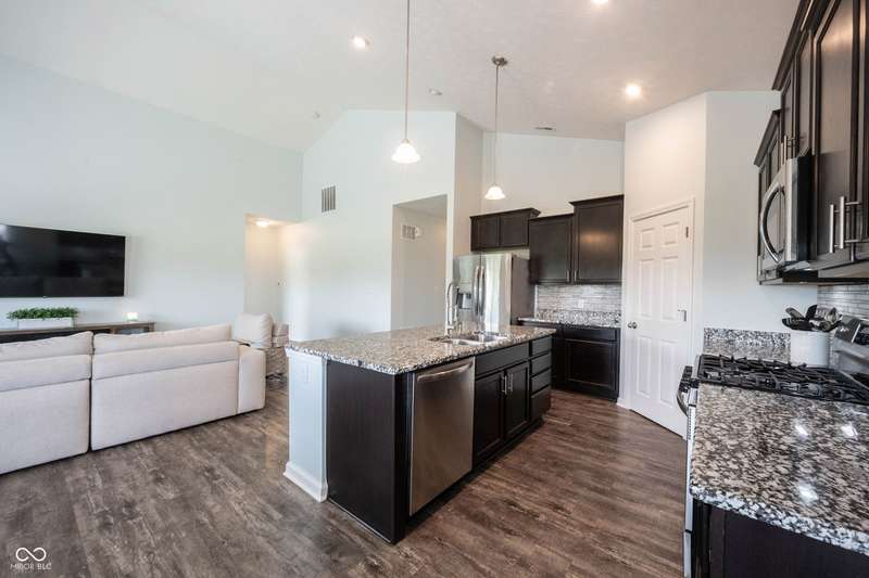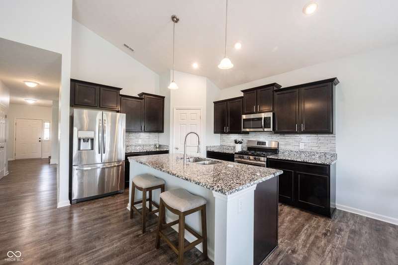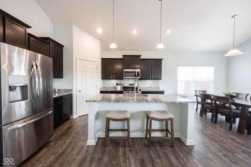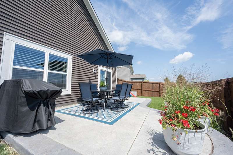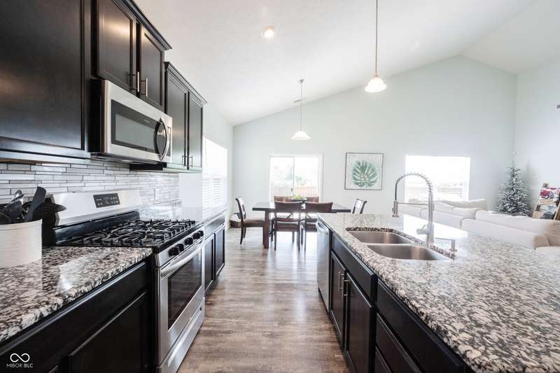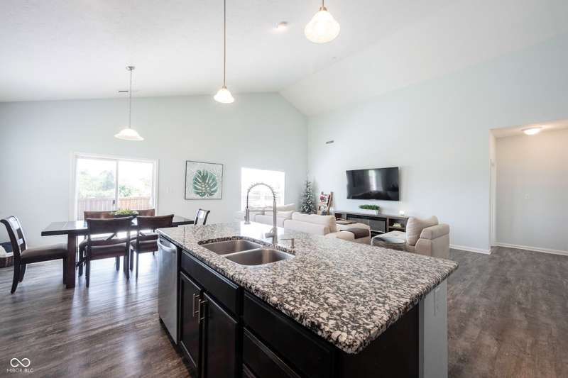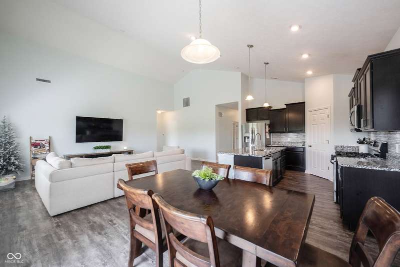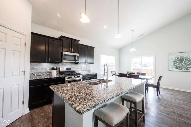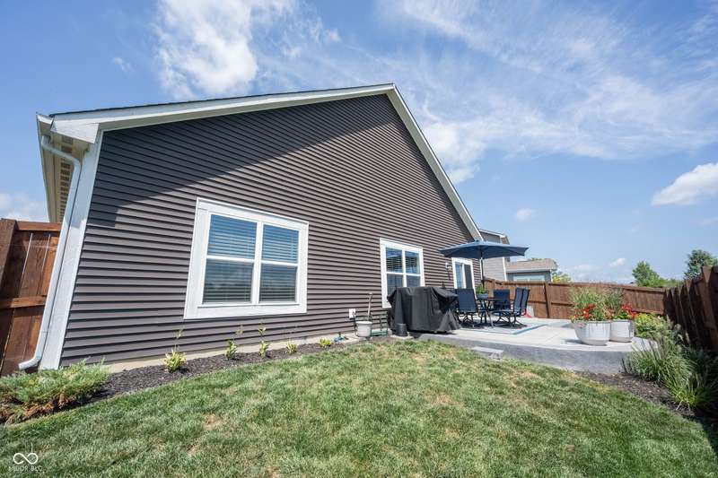 Fall in love with this spacious ranch-style home! Soaring ceilings enhance the open floor plan that is perfect for everyday living and entertaining! Large living room flows seamlessly into a dining area and kitchen which boasts granite countertops, a stylish tile backsplash, breakfast bar, island, stainless steel appliances and generous pantry. Convenient split bedroom floor plan ensures privacy. Primary retreat is expansive with tray ceiling, oversized attached bath with double sinks, walk in shower and large walk-in closet. Laundry room right off the garage doubles as a mudroom for added functionality. Step outside to a fenced, low-maintenance backyard complete with a spacious patio and the privacy of no neighbors directly behind you - an ideal space to relax and unwind!
