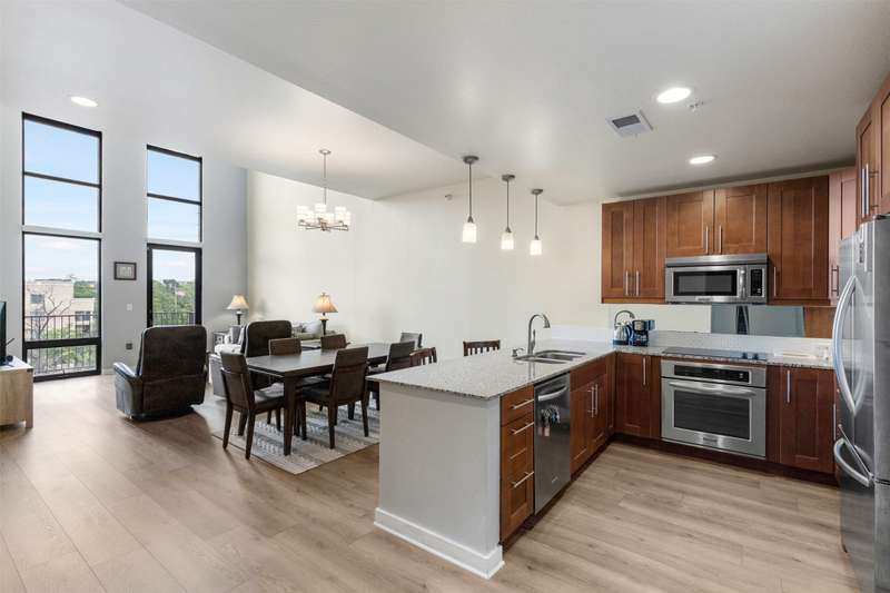 Experience modern urban living at its finest in this stunning two-story loft-style condo located in the heart of Fort Worths vibrant West 7th district. Situated on the top 2 floors of the ArtHouse at So7, Unit 3407 offers 1,730 square feet of contemporary design, featuring soaring 20-foot floor-to-ceiling windows that flood the space with natural light and provide captivating views of the downtown skyline. The open-concept main level seamlessly integrates the kitchen, living, and dining areas, creating an ideal space for entertaining. The kitchen is equipped with modern appliances, including an electric cooktop, oven, microwave, refrigerator, and dishwasher, complemented by sleek finishes. A guest bedroom with an en-suite full bath and a convenient half bath complete the main floor. Ascend to the upper level to discover a spacious primary suite featuring a private entrance to the fifth floor, a luxurious bathroom with a deep garden tub, separate shower, and a custom-built walk-in closet. Recent updates new LVT flooring and 2 new HVAC units with new thermostats. Enjoy outdoor living on the private balcony with panoramic downtown views. Additional amenities include a deeded parking space in the garage and 1 unreserved space, access to a community pool, a dog area. Located just minutes from Downtown Fort Worth, Trinity Park, and TCU, UNTHSC, this condo offers unparalleled access to shopping, dining, and cultural attractions. Dont miss the opportunity to own this exceptional property in one of Fort Worths most sought-after neighborhoods!