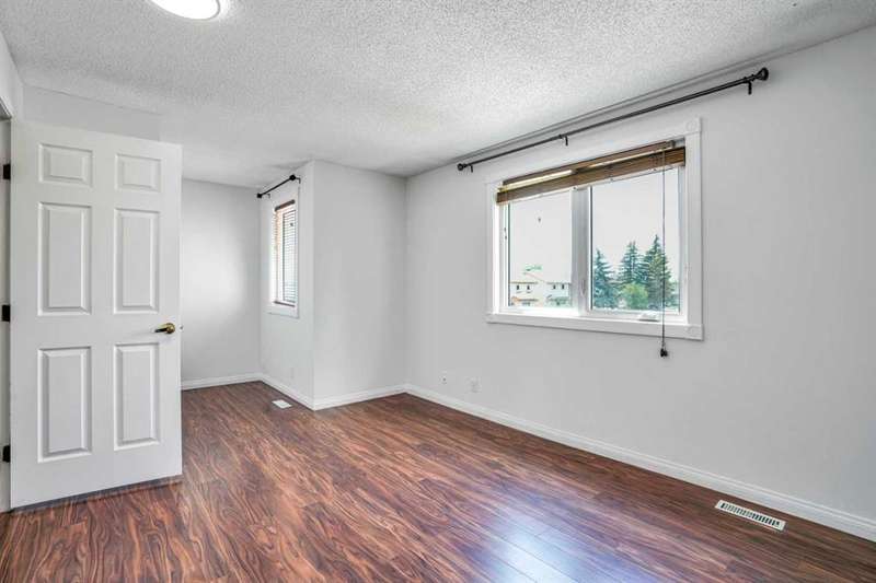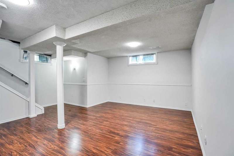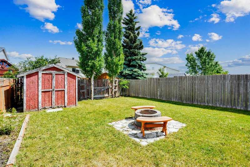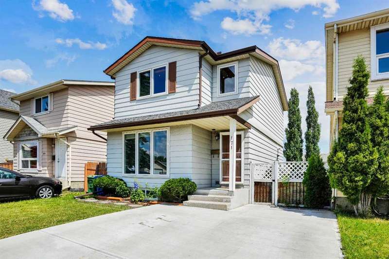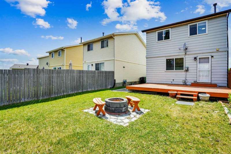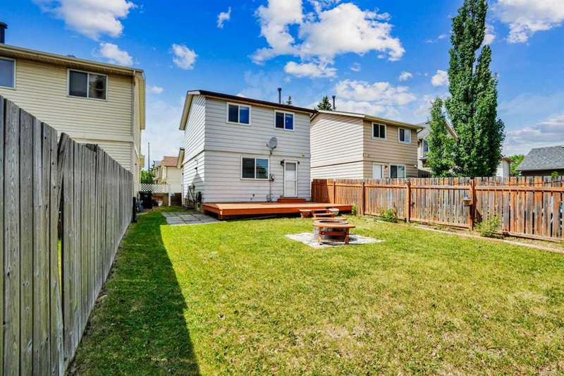 Welcome to Erin Woods, a family oriented community in the heart of Calgary! Just minutes away from major highways and close to schools, this beautifully refreshed 2-storey home offers a perfect size and functionality for a new family. The home features fresh paint, new Vinyl flooring, modern lighting fixtures, newer appliances, newer vinyl windows, new bathroom vanities —making it your move-in ready home. The large east-facing backyard fills the home with natural lights while offering cool shade in the afternoons, perfect for relaxing on the large deck during warm summer days with your family and friends. The main floor features vinyl flooring, an open concept large and cozy living room combined with dining room, and a U shaped kitchen with abundant storage and counter space—ideal for small parties. A convenient half bath and laundry room off the back door. Upstairs, you’ll find three spacious bedrooms and a 4-piece bathroom. The primary suite is facing west with plenty of natural light. The fully finished basement offers even more living space with a half bathroom that can be converted into a full bath, open spaces are perfect for movie nights, casual evenings can be converted into a 4th bedroom making this home incredibly versatile for growing families. This home is perfect for any first time home buyer or potential investors, it is located in a super convenient location in a welcoming, safe, established neighborhood.