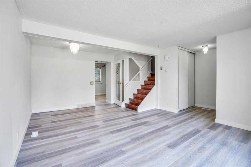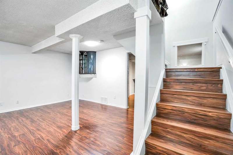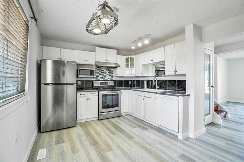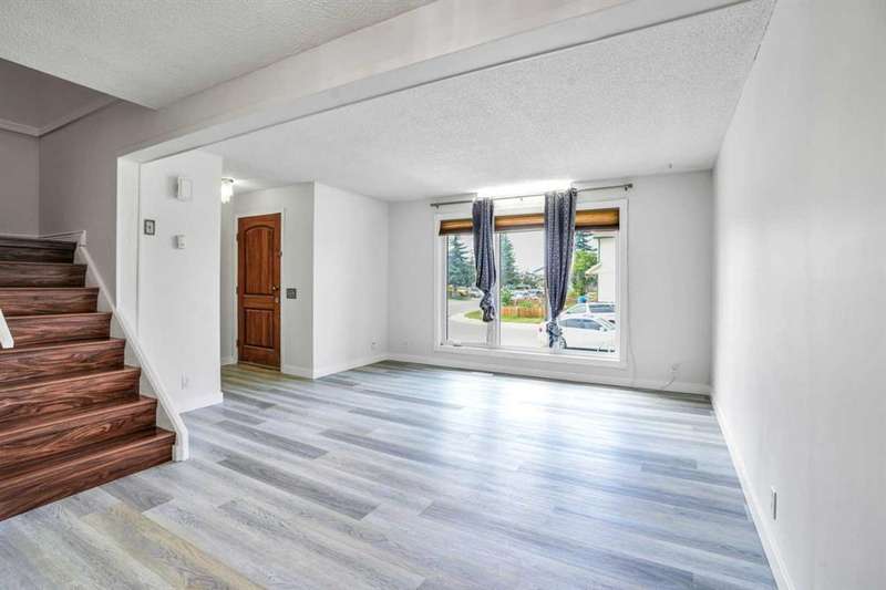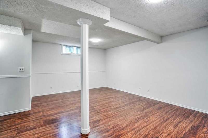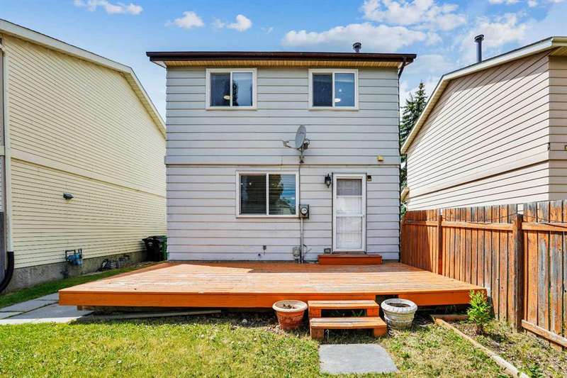 Welcome to Erin Woods, a family oriented community in the heart of Calgary! Just minutes away from major highways and close to schools, this beautifully refreshed 2-storey home offers a perfect size and functionality for a new family. The home features fresh paint, new Vinyl flooring, modern lighting fixtures, newer appliances, newer vinyl windows, new bathroom vanities —making it your move-in ready home. The large east-facing backyard fills the home with natural lights while offering cool shade in the afternoons, perfect for relaxing on the large deck during warm summer days with your family and friends. The main floor features vinyl flooring, an open concept large and cozy living room combined with dining room, and a U shaped kitchen with abundant storage and counter space—ideal for small parties. A convenient half bath and laundry room off the back door. Upstairs, you’ll find three spacious bedrooms and a 4-piece bathroom. The primary suite is facing west with plenty of natural light. The fully finished basement offers even more living space with a half bathroom that can be converted into a full bath, open spaces are perfect for movie nights, casual evenings can be converted into a 4th bedroom making this home incredibly versatile for growing families. This home is perfect for any first time home buyer or potential investors, it is located in a super convenient location in a welcoming, safe, established neighborhood.