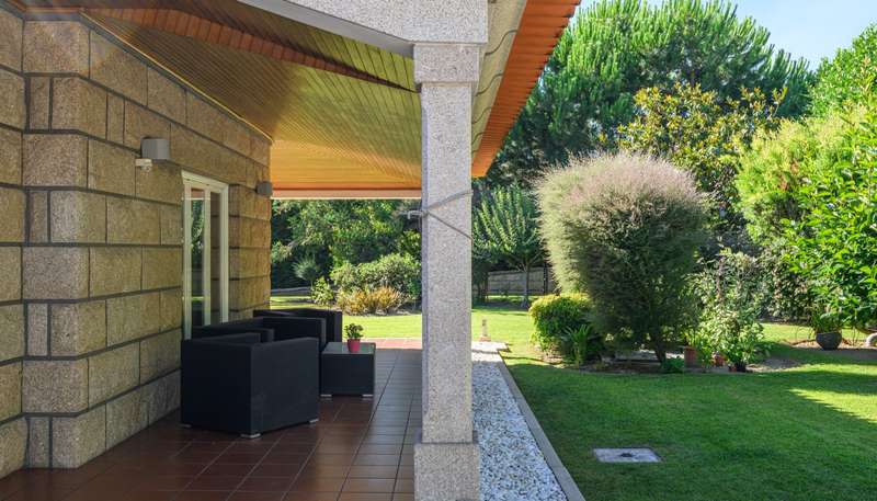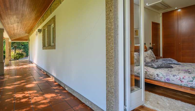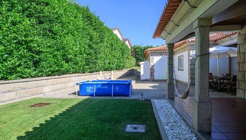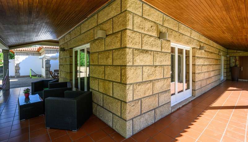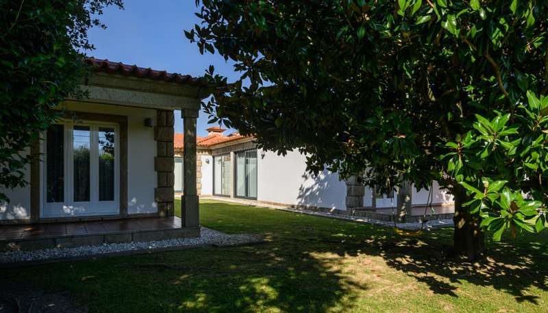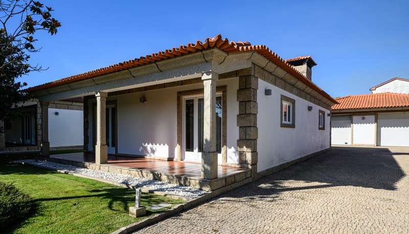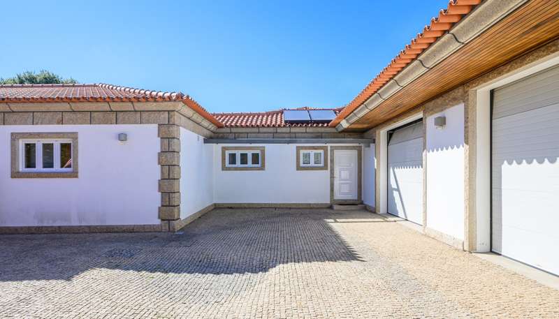 Charming single storey villa, with 4 bedrooms and 4 fronts, offering large areas and quality finishes. It stands out for a vast outdoor area with excellent sun exposure and a beautiful garden. The property has a living and dining room with fireplace and stove, providing cozy environments. The kitchen is fully equipped, with access to the dining room and the outside. There is also a social bathroom. In total, the property has 4 bedrooms: 2 suites and 2 bedrooms, with the fourth having a full bathroom to support it. It should also be noted that there is a huge lounge with kitchen, fireplace with stove and access to the outside, providing a versatile and inviting space. To complement, the garage is closed and holds up to 5 cars. The location is easily accessible, with proximity to commerce, services and transport network. The property is 35 minutes from Francisco Sá Carneiro airport and 38 minutes from Porto. CHARACTERISTICS: Plot Area: 4 000 m2 | 43 056 sq ft Deployment Area: 620 m2 | 6 674 sq ft Building Area: 620 m2 | 6 674 sq ft Bedrooms: 4 Bathrooms: 4 Garage: 5 Energy efficiency: C FEATURES: