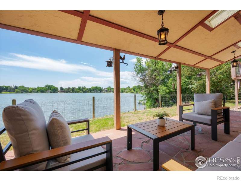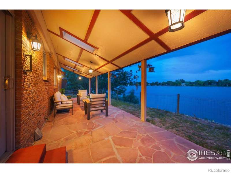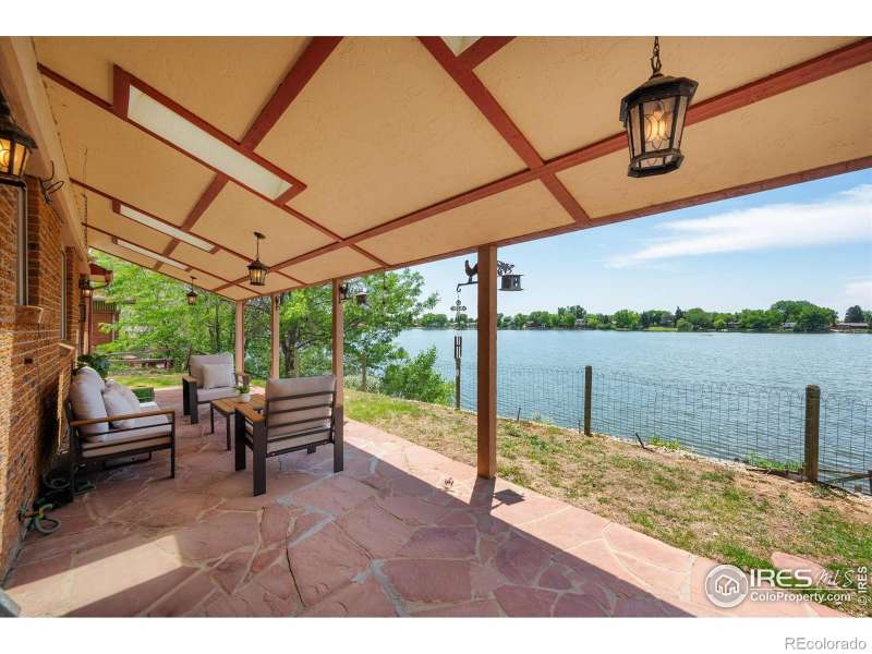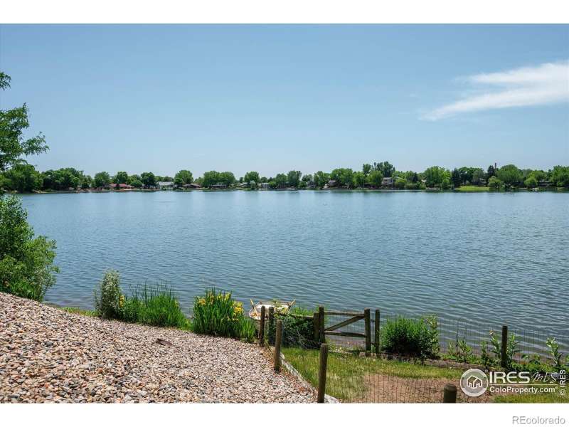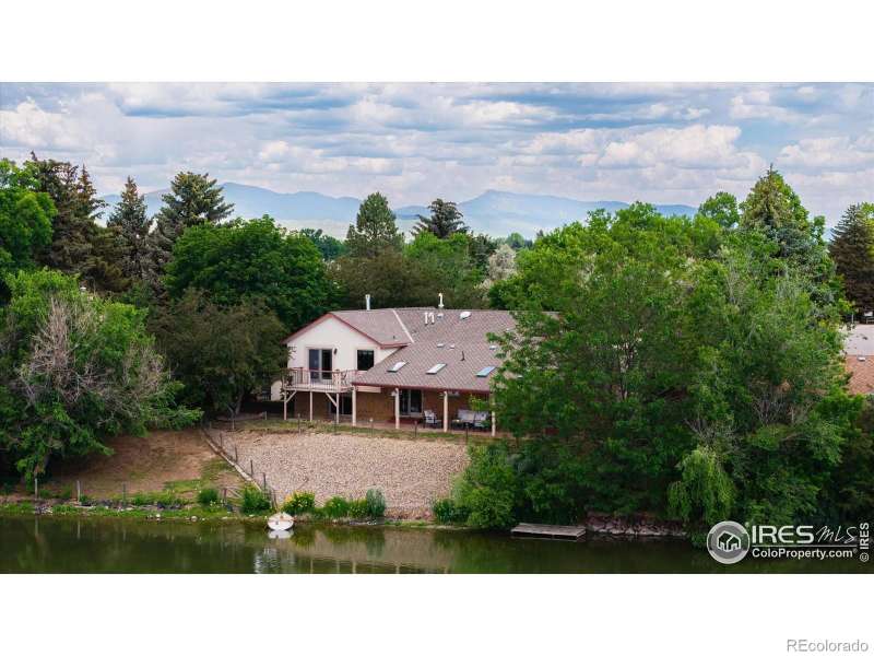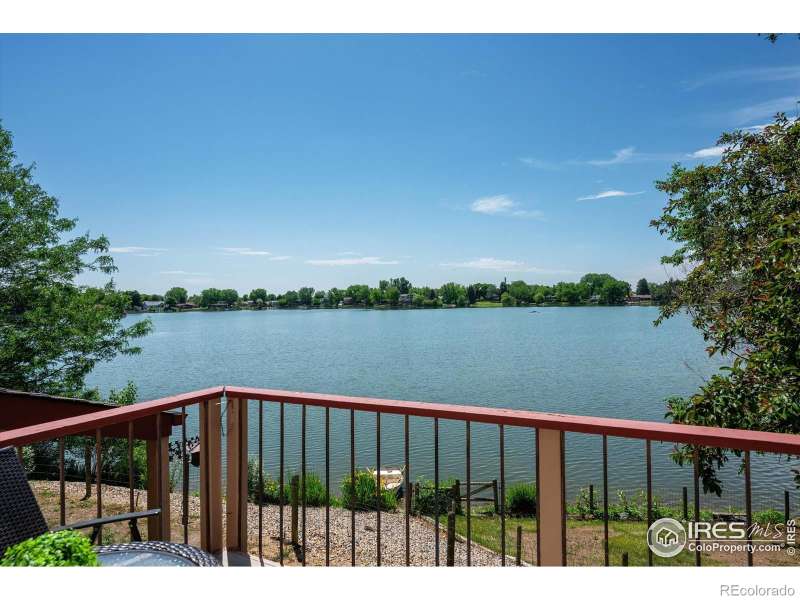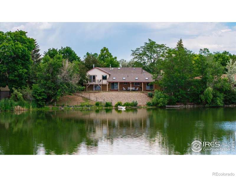 This lakefront property in Loveland is quaint, quiet, and magical! Tucked away at the end of a peaceful cul-de-sac and surrounded by mature trees, the home feels like a private oasis-yet it's just minutes from downtown Loveland, with quick access to Hwy 287 and Hwy 34. The home's show-stopper is its outdoor living. The backyard features two stunning spots to take in the water: one, a large covered patio with skylights and plenty of space for seating, dining, and grilling; and two, a private balcony off the primary suite overlooking the lake. And the private lake isn't just for looks-exclusive access allows residents to enjoy it with non-motorized boats. You can paddle, kayak, and even go fishing all from your backyard. Inside, you'll appreciate all the potential. Enjoy panoramic lake views from nearly every room in the house. Vaulted ceilings with distinctive beam work and built-in shelving flanking the cozy fireplace add architectural charm and warmth. Upstairs, the spacious primary suite features its own fireplace, loads of natural light, and a private balcony overlooking the water-perfect for peaceful mornings or relaxing evenings. The 5-piece en-suite bath includes a generously sized walk-in closet (nearly 12' x 7') complete with natural light. The lower level offers a versatile living space or rec room, an additional bedroom, and a full bathroom. A two-car garage with extra storage space completes this one-of-a-kind property. This home is full of potential-you must see it to truly appreciate just how relaxing and beautiful this lakefront rarity is.