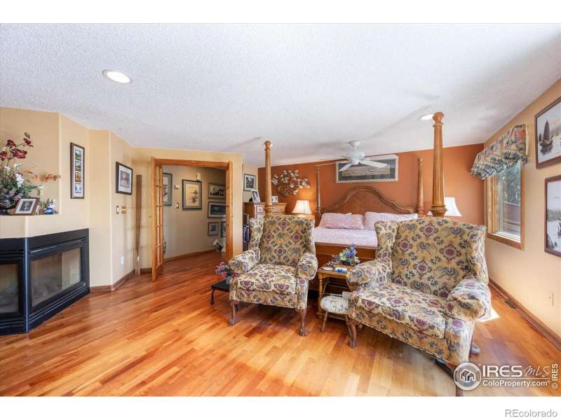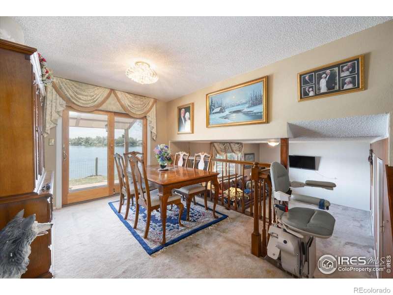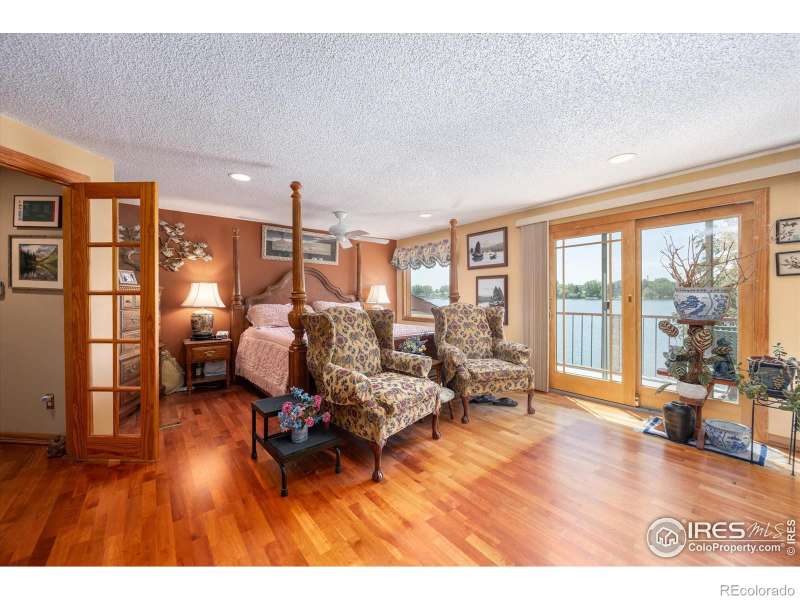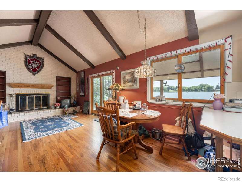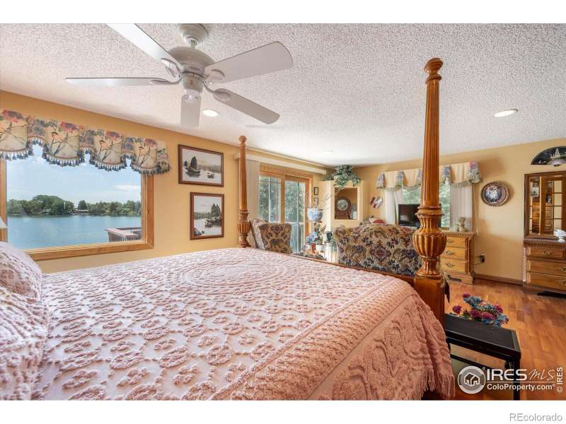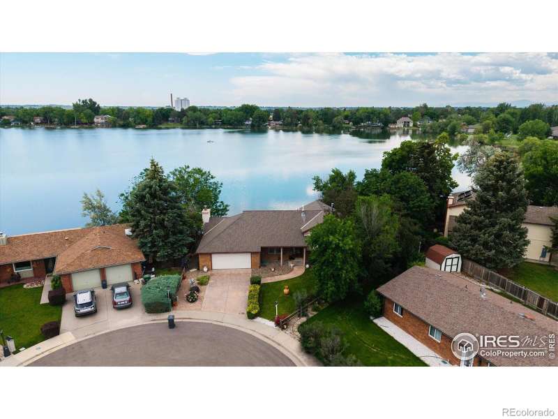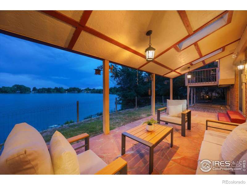 This lakefront property in Loveland is quaint, quiet, and magical! Tucked away at the end of a peaceful cul-de-sac and surrounded by mature trees, the home feels like a private oasis-yet it's just minutes from downtown Loveland, with quick access to Hwy 287 and Hwy 34. The home's show-stopper is its outdoor living. The backyard features two stunning spots to take in the water: one, a large covered patio with skylights and plenty of space for seating, dining, and grilling; and two, a private balcony off the primary suite overlooking the lake. And the private lake isn't just for looks-exclusive access allows residents to enjoy it with non-motorized boats. You can paddle, kayak, and even go fishing all from your backyard. Inside, you'll appreciate all the potential. Enjoy panoramic lake views from nearly every room in the house. Vaulted ceilings with distinctive beam work and built-in shelving flanking the cozy fireplace add architectural charm and warmth. Upstairs, the spacious primary suite features its own fireplace, loads of natural light, and a private balcony overlooking the water-perfect for peaceful mornings or relaxing evenings. The 5-piece en-suite bath includes a generously sized walk-in closet (nearly 12' x 7') complete with natural light. The lower level offers a versatile living space or rec room, an additional bedroom, and a full bathroom. A two-car garage with extra storage space completes this one-of-a-kind property. This home is full of potential-you must see it to truly appreciate just how relaxing and beautiful this lakefront rarity is.