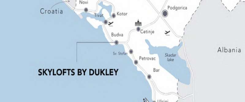 Dukley Gardens takes full advantage of its privileged location on the Zavala peninsula, in the center of Montenegrin tourism in Budva. Well positioned, this development is only 27km from Tivat International Airport and 65km from the airport in Podgorica, the capital of Montenegro.