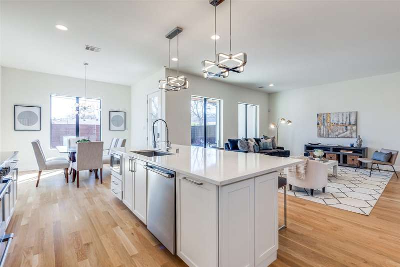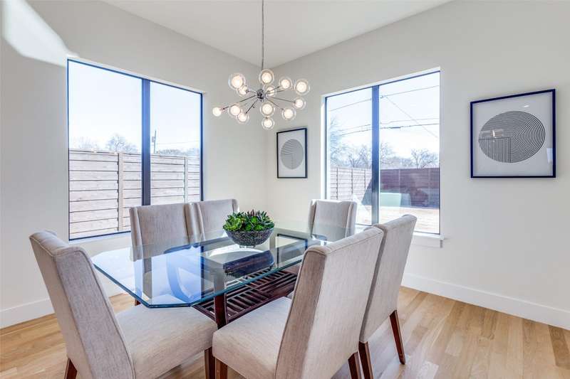 Stunning modern transitional home nestled on an oversized corner lot in the highly sought-after Walnut Hill Estates neighborhood of Dallas. This exquisite residence boasts 4 spacious bedrooms and 3 luxurious bathrooms within its expansive 3,157 square feet of living space. As you step inside, you'll be greeted by soaring ceilings and an abundance of natural light that accentuates the home's stylish finishes. The open-concept design seamlessly connects the formal dining area, living room, and a gourmet eat-in kitchen equipped with professional-grade stainless steel appliances, a large kitchen island, and a pantry. The primary suite, located on the first floor, offers a spa-inspired bathroom with double vanities and a large walk-in closet. Upstairs, you'll find three additional bedrooms, a dual-entry bathroom with separate sink areas, and a versatile flex space perfect for a media room, office, or gym. Energy efficiency is a hallmark of this home, featuring stucco exterior, spray foam insulation, a 16 SEER dual-zoned HVAC system, and a tankless water heater. The private backyard features a covered porch, perfect for outdoor entertaining. The property is ideally located near Love Field Airport, Central Market, and is within the esteemed Withers Elementary School district. Additionally, it's in close proximity to Dallas' private school corridor, making it a prime location for families.