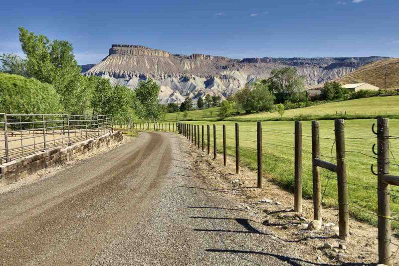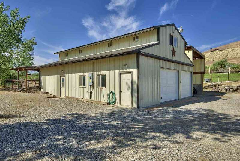 30.99 acres on a dead end road with extraordinary views; zoned agricultural and adjoining BLM land consisting of 2 parcels under conservation easement; parcel #1 is 16.99 acres with 14 water right acres of OMID irrigation water of which approximately 12 acres is under cultivation and parcel #2 is 14 acres with 6.05 water right acres of OMID irrigation water, presently utilized as wildlife refuge. Parcel #1 was previously in both peach orchard and hay pasture; presently it is in hay pasture but can easily be replanted in orchard. Property includes a 6,064 square foot home, heated barn/equestrian set up, a separate building presently used as office space with shop that includes a bathroom and kitchenette plumbed for future business related housing space, multiple outbuildings and 2 ponds. Enjoy privacy without isolation as it is close to schools, medical facilities and shopping.