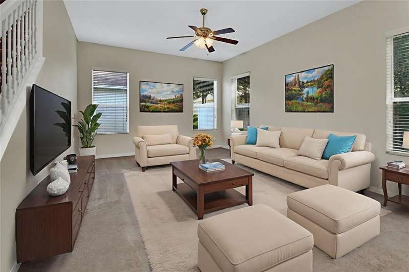 Welcome to your dream home in the desirable community of Saddlebrook, where tranquility meets convenience. This Nice Home Features 5 bedrooms, 4 Bathrooms and a 3 car garage. ***BRAND NEW ROOF INSTALLED 8/2025*** Downstairs there are 4 bedrooms and 3 Bathrooms and the inside Laundry room; You must see this great floor plan. This home is built for convenient living and upstairs there is a fantastic space with 630 sq ft that has 1 bedroom, a large Bonus room with large closet and a full bathroom, this could easily be a guest apartment or In-law suite. The Primary Bedroom suite is on the first floor and its a split plan. The Sellers recently painted the inside of the home and had new carpet within the last couple of years. This lovely community boasts water features throughout, creating a serene atmosphere perfect for unwinding after a long day. Step outside and stroll through this walking community, with plenty of sidewalks for leisurely evening walks. Cool off in the community pool with a charming cabana, perfect for hosting summer gatherings with friends and family. Every home in this community features pavers in the driveway, adding to the upscale feel of the neighborhood. Enjoy easy access to shopping, dining, hospitals, doctors, and schools, making errands a breeze. With easy access to I-4 for commuting to work, this property truly has it all. Don't miss your chance to call this beautiful house your home.