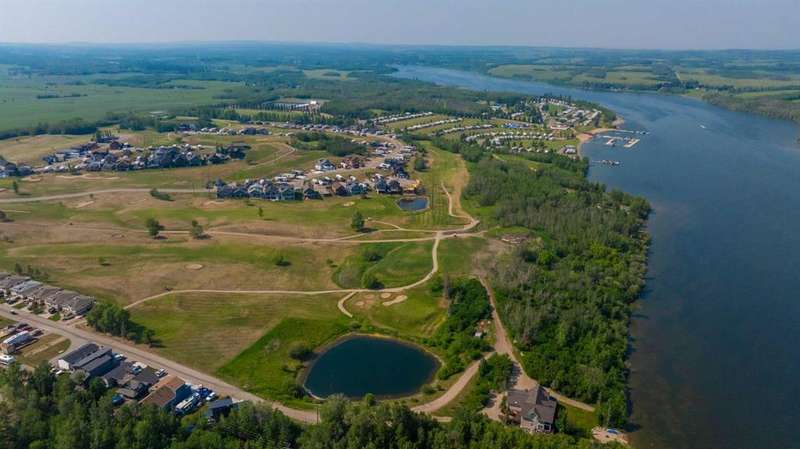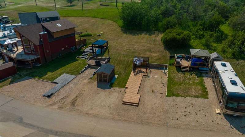 Escape to the tranquil beauty of Whispering Pines, a premier golf and country club community located on the shores of Pine Lake in Alberta. Located in a gated community, this lot is in Phase 6, providing easy access to the resort's amenities. This lot boasts beautiful lake views and is ready for your dream home or your holiday trailer with extra parking included and currently has a deck set up with a fireplace for those cool Alberta evenings. Just a short drive from Calgary, Edmonton, and Red Deer, this picturesque community offers a perfect blend of natural beauty and modern amenities. Golf, Lake, and More. At Whispering Pines, you'll find yourself surrounded by endless recreational opportunities. Tee off at the 18-hole championship golf course, practice your swing at the driving range, or enjoy a friendly game of pickleball. For water enthusiasts, the marina provides easy access to Pine Lake, where you can enjoy boating, fishing, and swimming. The clubhouse serves as the heart of the community, offering a variety of amenities for residents to enjoy. Relax in the indoor pool and hot tub, stay active in the gym, or unwind in the sauna. The clubhouse also features a restaurant and lounge with a stunning outdoor terrace overlooking the lake, perfect for socializing with neighbors and friends. Whispering Pines is more than just a place to live – it's a vibrant community where neighbors become friends. Residents can participate in monthly community events organized by the management and residents, ensuring there's always something exciting happening. Whether you're looking for a vacation getaway or a permanent residence, Whispering Pines offers a variety of housing options to suit your needs. From cozy cottages to spacious lakefront homes, there's something for everyone. Plus, with architectural guidelines in place, you can rest assured that your investment will be protected. Whispering Pines is more than just a community – it's a lifestyle. With its breathtaking natural beauty, endless recreational opportunities, and welcoming community spirit, Whispering Pines offers the perfect retreat from the hustle and bustle of city life. Come discover why Whispering Pines is one of Alberta's most sought-after communities – your perfect retreat awaits.**Please note that if you choose to build there are architectural restrictions.**THIS LOT PERMITS A DOUBLE GARAGE**