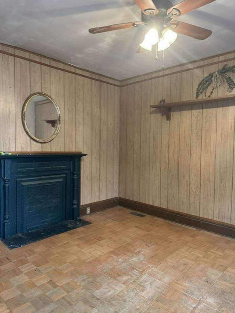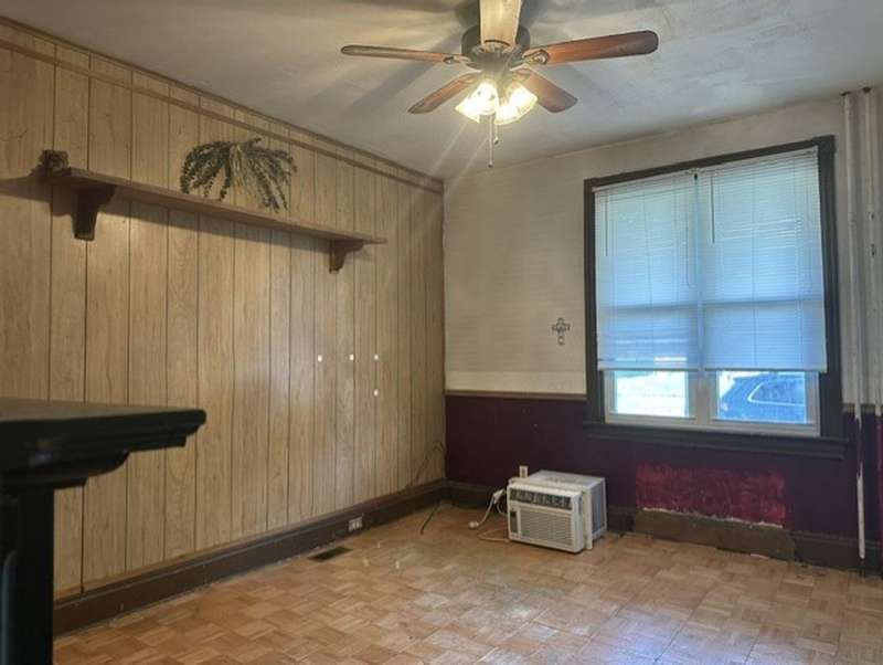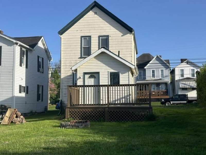 Home is spacious and could be quite charming with work. It offers a covered front porch and a rear deck that looks out over a nice sized level rear yard with firepit. First floor offers a full bath and laundry as well as spacious living room and dining room. Great for investors.