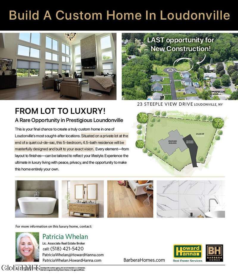 From Lot to Luxury!Enjoy perfection, even if you don't have the luxury of time! Your opportunity to own a stunning new construction home in a prestigious Loudonville location where every detail is expertly designed for you. This 5 bedroom, 4.5 bath masterpiece will sit on a private lot at the end of a quite cul-de-sac, offering ultimate peace and privacy. An open concept living area anchored by a chef's kitchen with top of the line appliances, quartz countertops, custom cabinetry, flows seamlessly to a dramatic great room with soaring ceilings and a breathtaking glass feature window; elevating everyday into extraordinary. 1st floor primary suite with spa bath plus 1st floor guest suite. 3 bedrooms up with own baths. All details crafted with style, comfort and efficiency. To be built by Barbera Homes.