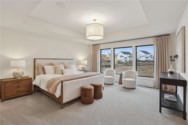 Discover the SUTTON SPORT in Evanswood, with construction starting June 3rd and completion expected in early 2026! The main level impresses with 10’ ceilings, a raised ceiling adorned with wood beams, a sink on the exterior wall, dual kitchen islands, a unified dining area, and a inviting sunroom with a fireplace and vaulted ceiling. Upstairs, the ‘Great Hall’ leads to a stunning Owner’s Suite with a spa-inspired bathroom, Jack and Jill bedrooms, a Junior Suite, and a flexible bonus room. The fully finished lower level features an indoor Sport Center with a spacious exercise area, wet bar, and game zone. Located in the Evanswood community, enjoy a pool, clubhouse, and proximity to a new elementary school (opening soon) and Maple Grove High School. Hanson Builders offers 31 homesites with picturesque wooded, pond, creek, and walkout lot views.