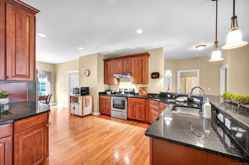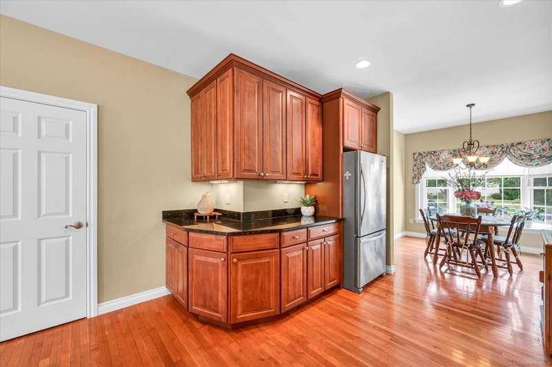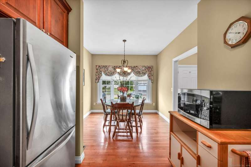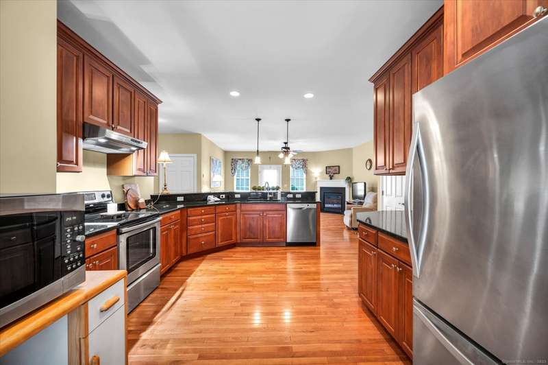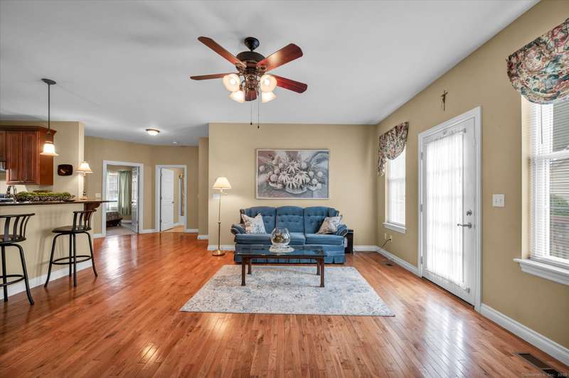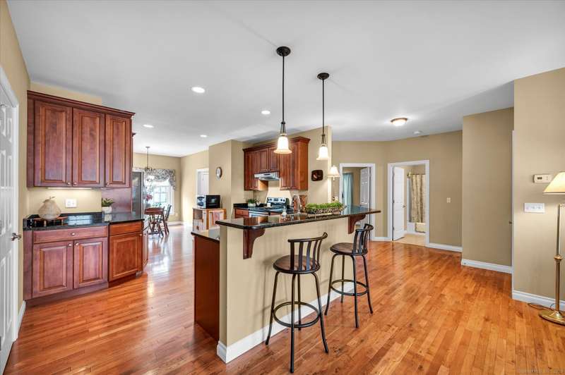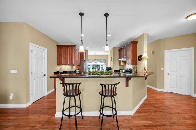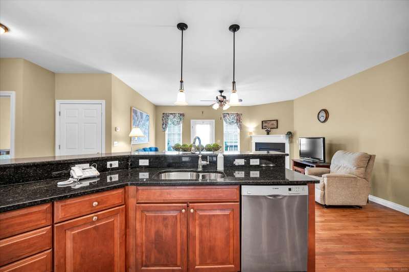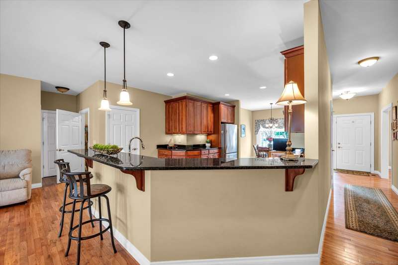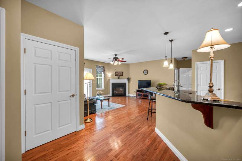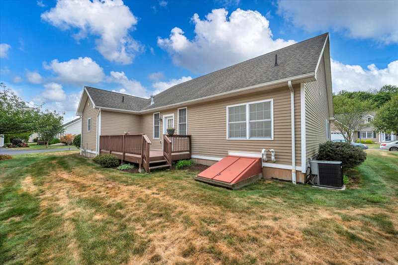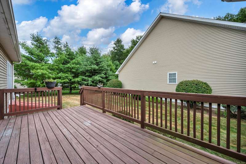 Spacious 55+ Ranch-Style Condo in Bridgefield Commons! This beautiful home offers over 1,900 sq. ft. of living space with 3 bedrooms and 2 full baths. Featuring gleaming hardwood floors, formal dining room, gas fireplace and a bright eat-in kitchen with granite countertops, and an open layout perfect for entertaining. Enjoy outdoor living on the large deck overlooking the quiet neighborhood. The home also includes an attached garage and an expansive unfinished basement-over 1,900 sq. ft.-ready to be finished for additional living space. Low condo fees make this well-maintained community an easy choice. Conveniently located in Meriden, Bridgefield Commons is a sought-after 55+ neighborhood offering peace and comfort. Move right in and enjoy!