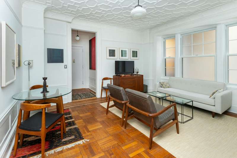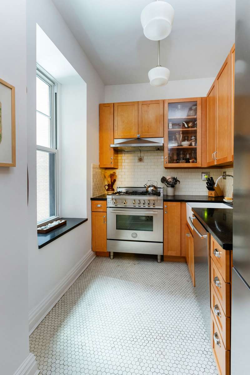 Pre-War one bedroom with very large rooms, approximately 9.5 foot ceilings, parquet wood floors and triple pane windows. The very functional windowed kitchen is complete with a full-size Bosch dishwasher, a new Liebherr refrigerator, a farmhouse sink, along with stylish Schoolhouse Electric fixtures. The bedroom is very large with enough space for a queen bed and desk. There is a wealth of closets throughout and one closet is large enough to fit a desk. Only one flight up on the second floor, the apartment can be accessed by stairs or the building's elevator. The monthly maintenance is a low $1,672.47.
