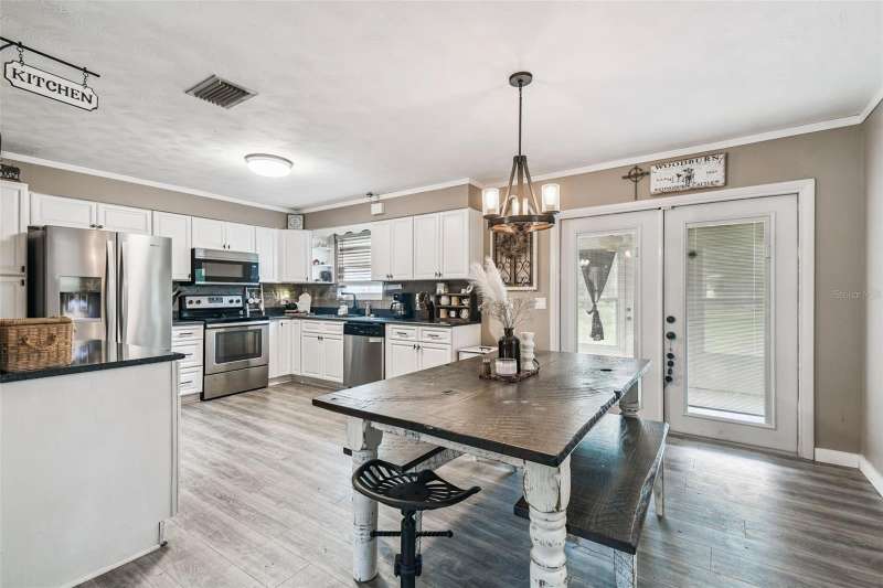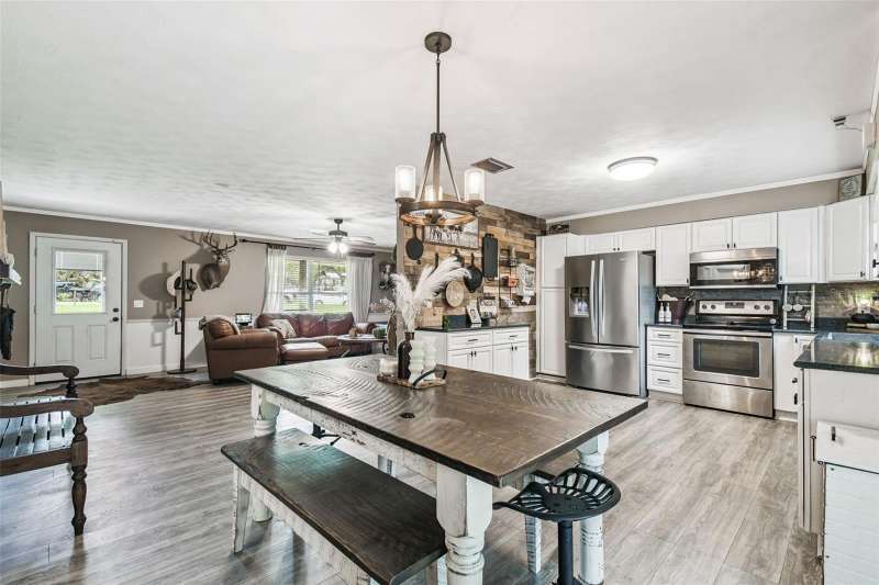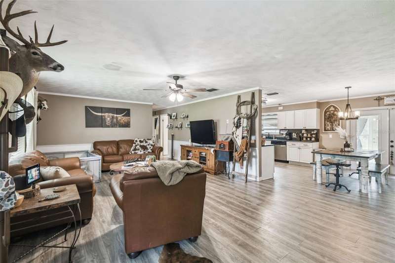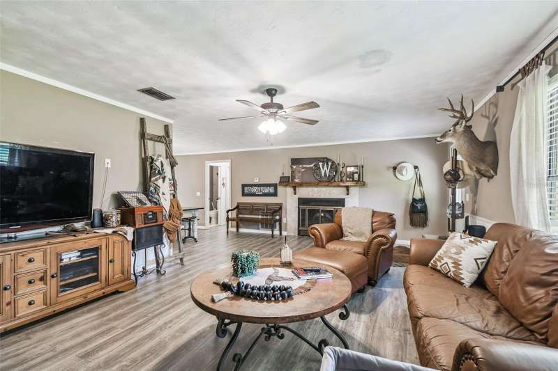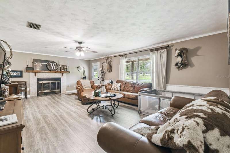 Unique Opportunity to Own 3 Parcels Equaling 2.96 acres!!! Completely Fenced, Expansive Yard with Mature Oaks that lead you to Lake Placid. This 2 Bedroom 2 Bath Home is located on the center parcel with a Covered Front Porch complete with Swing to Relax after a long day. A Spacious Living Room welcomes you in featuring Crown Molding, Wainscoting Panel Accent, Fireplace with Wood Mantel, and Luxury Vinyl Plank Flooring extending into the Dining room and Kitchen. Open Kitchen features Stainless Steel Appliances, Granite Countertops, and Barnwood Accent Wall. Main Bathroom has two Separate Entries for easy access from both bedrooms. Oversized Garages with Laundry and provide Tons of Storage Space or Covert to a large primary bedroom suite. Additional parcels also provide the opportunity of a 2nd/3rd home (Zoned R2C and RR1C). Don't miss your opportunity to own this piece of the Beautiful Florida Country, Away from the Hustle of City Life, with Room to Roam or Grow!