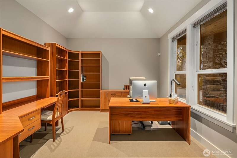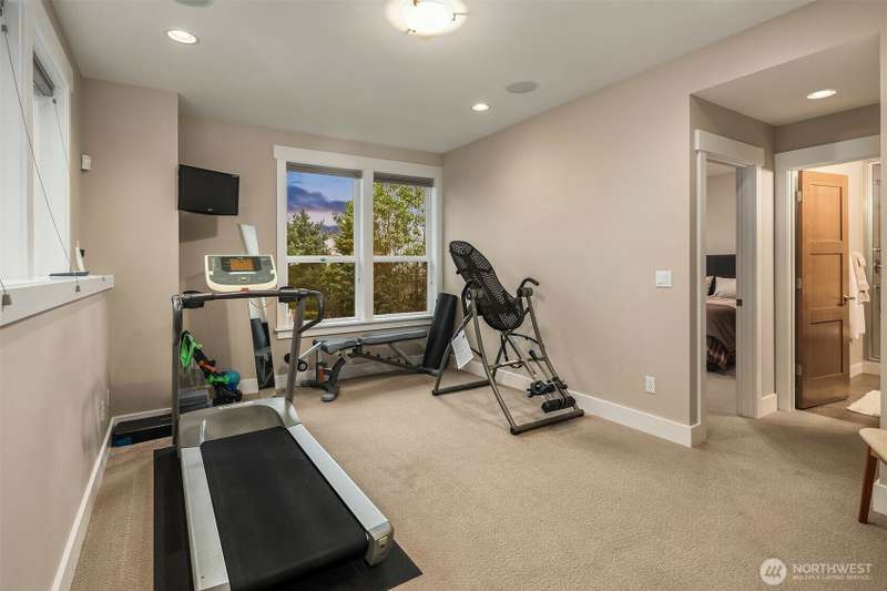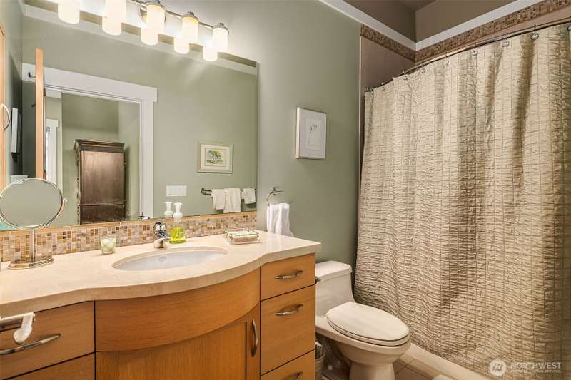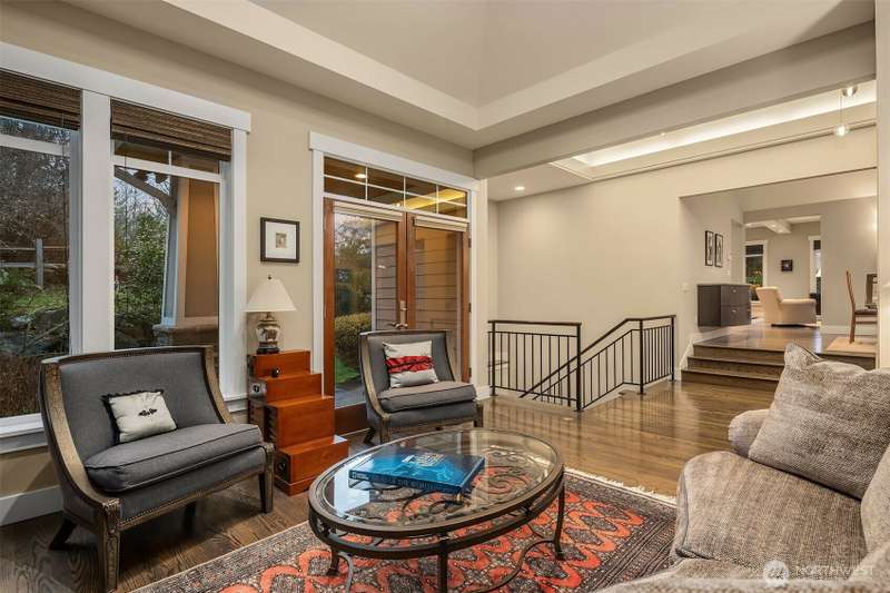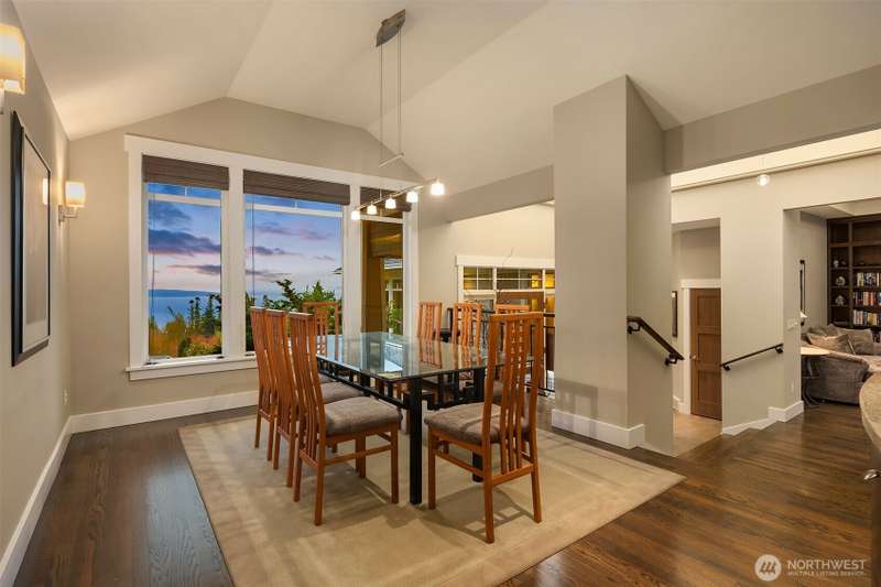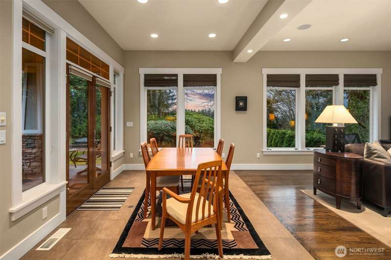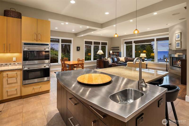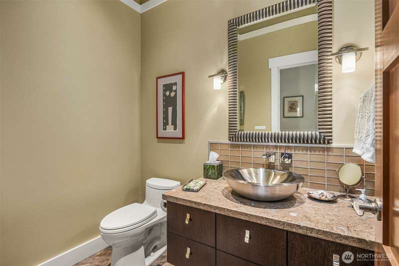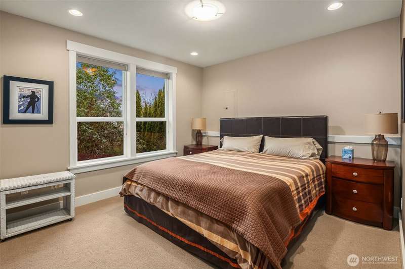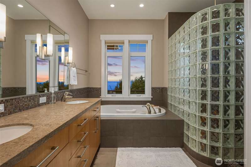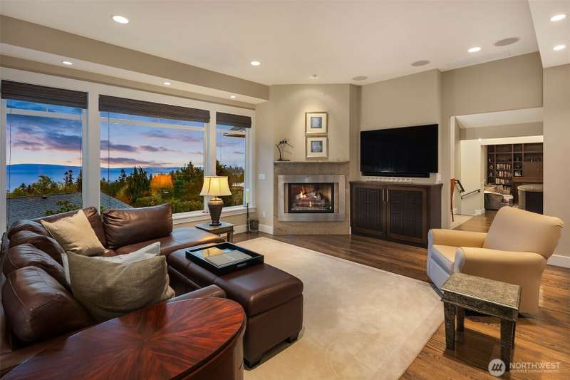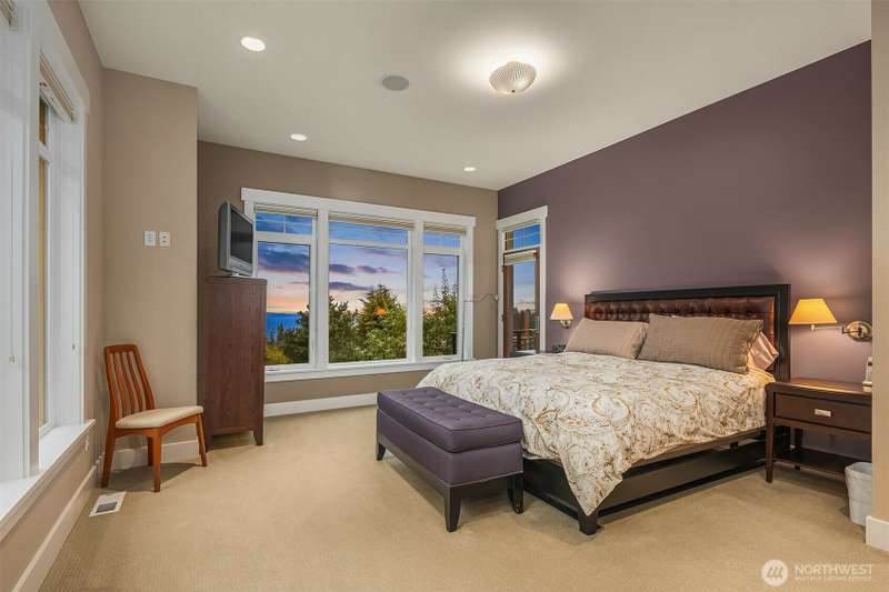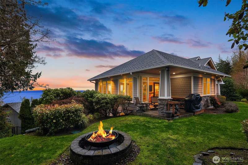 Secluded 3,755 sq ft home on a quiet cul-de-sac with stunning Mountain, Sound, Hat Island, & sunset views, adjacent to greenbelt. 3 bed + den, 3.5 bath with seamless indoor/outdoor living, custom patios & view decks. Gourmet kitchen w/Sub-Zero fridge, double ovens, island drawer fridge, warming tray, dumbwaiter, walk-in pantry w/2nd dishwasher. Heat & Glo fireplaces, surround sound, radiant heat (lower level), steam shower, Jacuzzi tub, laundry chute, night-lit stairs, bocce ball entry, and OnQ panel. Private, peaceful, and close to Japanese Gulch, waterfront parks, ferry & Boeing.