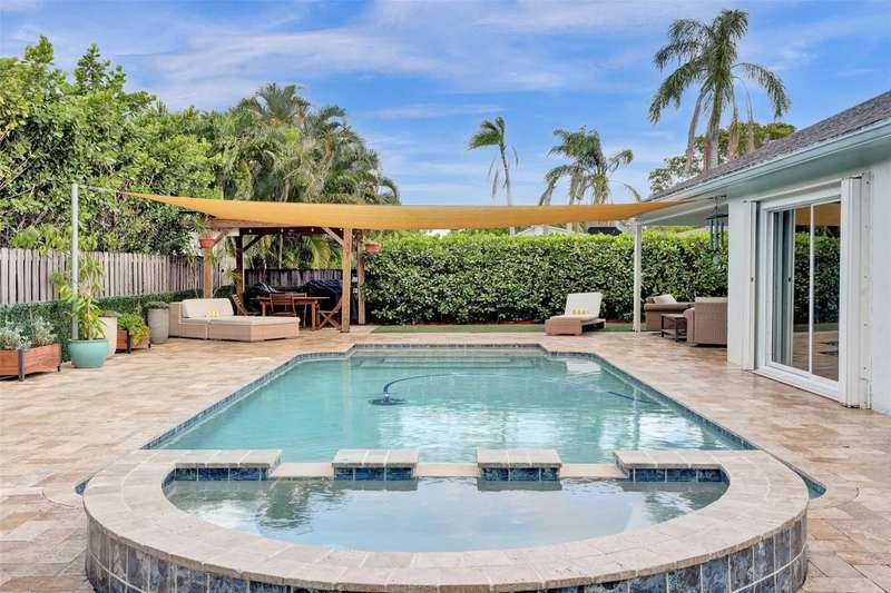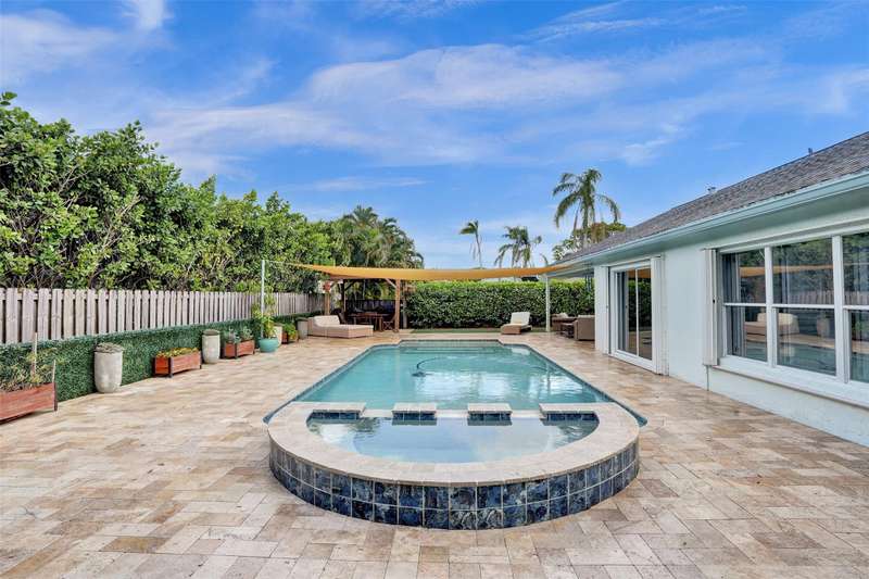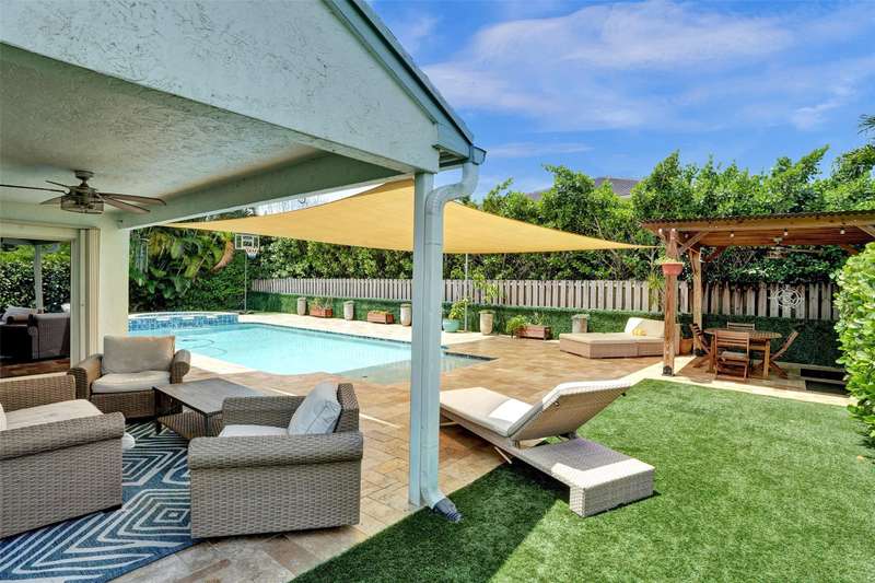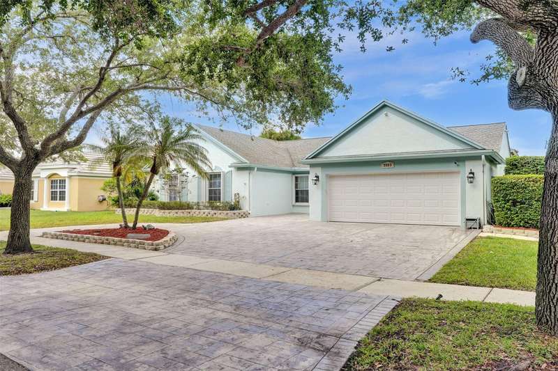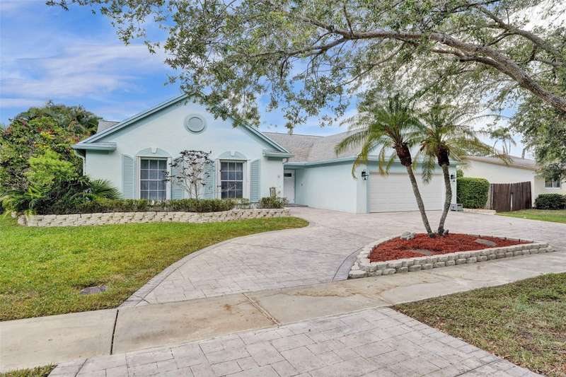 Tucked under beautiful trees in Cooper's Place, this stunning Cooper City home offers 3 bedrooms, 2 baths (with a spa-worthy primary), plus a den/office -or potential 4th bedroom. Inside are vaulted ceilings, sunlight pouring into open living and dining spaces, and a kitchen with granite counters and stainless appliances. Even more magic happens outside—your newly renovated outdoor retreat awaits with heated saltwater pool and jacuzzi. Privacy landscaping and shaded cooking, dining and lounging areas make this your dream escape. Child safety fencing if needed. Fishing enthusiasts will love the pond next door, and active adults and children will love the park a short walk away. Impact-rated garage door and accordion shutters for safety. This home checks every box!