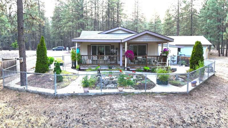 Welcome to this charming single-level home nestled in the serene rural-location near Kettle Falls where you can enjoy peek-a-boo views of Lake Roosevelt thru the tree lined ravine. This well-maintained 3-bed, 2-bath home is ready for its next owner and the property offers seclusion and stunning views of the surrounding landscape. This home is set in the Martin Creek area just above Lake Roosevelt on a full acre, w/a level bldg site, a large garage/shop and covered carport. The kitchen features a French style refrigerator, the stove has double ovens allowing you to cook several dishes at one time w/convection, a dishwasher, a built-in spice rack and a hanging cookware rack over the sink. The laundry room has the washer and dryer that are easily accessible off the kitchen or bath and also from the back-door carport for convenient entry to the kitchen w/your groceries. Enjoy the dining room that is set near the glass sliders to the covered deck and you can cozy up near the Pot Belly propane stove in the living room in the evenings. The large primary suite provides ample room w/a walk-in closet, a deep soaker tub and a shower. You will find yourself relaxing on your covered deck any time of day, with concrete sidewalks and a fenced back-yard to protect your flowers and gardens. The 2-bay detach garage is deep and wide, plus has 3 enclosed rooms for your hobbies. This home also features a heat pump/AC, generator, hard board siding, att cvd carport, water-feature pond and timed H20 system. The drive-way is level w/easy access to either side of the house, the front entry porch is covered and has a handicap ramp (not structurally attached) that can be swapped out for stairs (stairs are stored in the garage). This is a home for people that prefer wide open spaces, peace and quiet and distant neighbors. This home is close to the French Rock boat launch, Haag Cove campgrounds, Lake Ellen, thousands of acres of Colville National Forest and the Sherman Creek Fruit Orchards. Community water, septic is pumped, roads are plowed in winter. Access to Lake Roosevelt and the level beach access-point are only available for the community residents. The home and carpets have been cleaned. Shoes off for showings please.