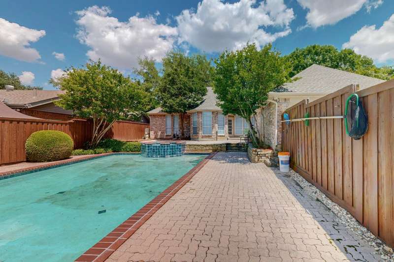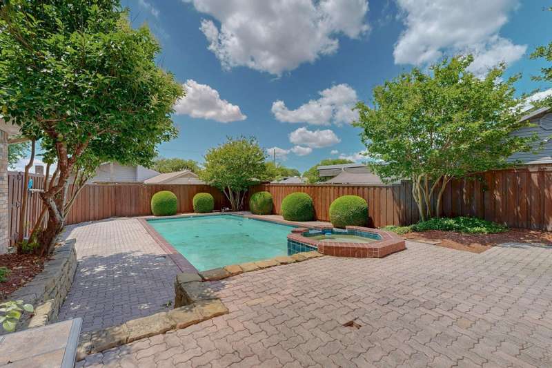 This charming and spacious 4-bedroom, 2.5-bath home is perfectly situated on a large corner lot in a quiet cul-de-sac street just a short walk to both the elementary and junior high schools in the highly regarded Richardson ISD.Step inside to discover a thoughtfully updated interior featuring a modern kitchen with a large center island, sleek appliances, and plenty of counter space ideal for entertaining and everyday living. The open layout flows into the inviting family room, highlighted by a soaring cathedral ceiling and generous space for gatherings.The oversized primary suite offers a peaceful retreat with a beautifully updated ensuite bath, complete with dual vanities and ample storage. Three additional bedrooms provide flexibility for guests, a home office, or a growing family.Outdoors, enjoy your own private oasis with an expansive backyard and an oversized pool perfect for summer relaxation, weekend barbecues, and entertaining under the Texas sun.Additional highlights include updated bathrooms, stylish finishes throughout, and a prime location close to schools, parks, and local amenities. VERY MOTIVATED SELLER! BRING OFFERS!