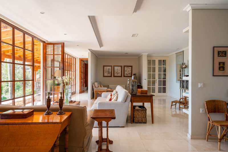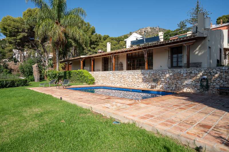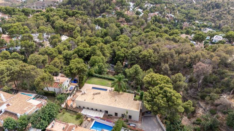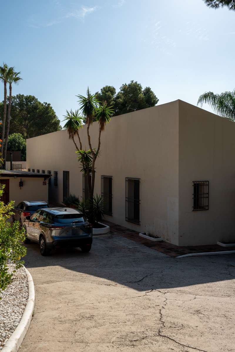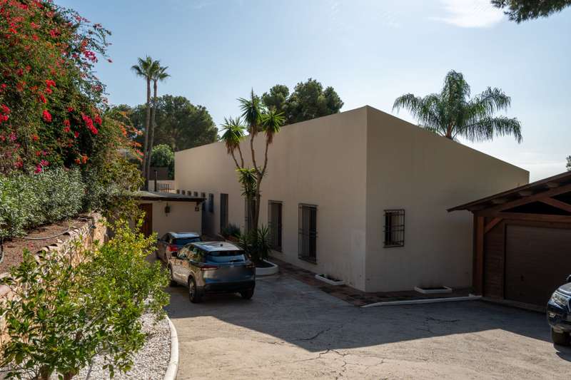 Now priced at €1,990,000, this single-story villa in Pinares de San Antón becomes one of the most attractive opportunities in the area. Set on a large and completely private plot, the house feels like a quiet Mediterranean hideaway, surrounded by mature trees, open terraces, a sunlit pool, and beautiful sea views from the main living spaces. The entrance from the upper street leads you down a private driveway, creating a sense of calm the moment you arrive. Inside, the layout works beautifully for family life: five spacious bedrooms, two of them en-suite, three full bathrooms plus a guest toilet, and a generous open-plan living and dining area where the views towards the garden and the Mediterranean become part of the décor. The kitchen is large and comfortable, perfect for everyday life or hosting, and it connects naturally to the outdoor BBQ area, ideal for long lunches and summer evenings. A separate building on the plot adds extra flexibility — whether you need a quiet office, a gu