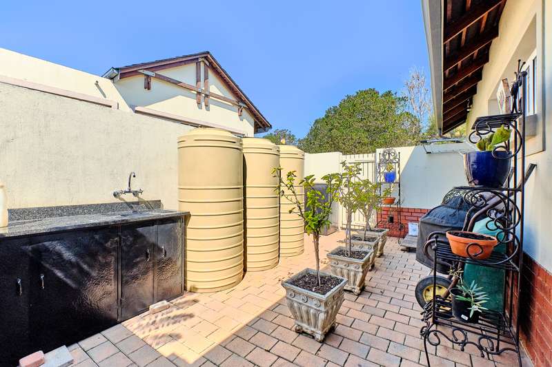 We are proud to present this magnificent retirement home. It has been thoughtfully planned and no effort has been spared in ensuring that all creature comforts have been provided for. All standard finishes which buyers are used to seeing in Waterfall Valley have been changed and modernised. Indoor/outdoor living is seamless in this home - with 2 living rooms and dining room which open onto the expansive covered patio enclosed with sliding stacking doors to the wrap around deck. The open plan kitchen is a masterpiece - integrated SMEG appliances, a centre island and separate scullery. At the heart of this home is an exquisite courtyard with water feature. It is the perfect quiet time spot to enjoy in the heat of the day or a sunny spot on a winter's day. The guest bedroom is a welcoming space served by its own bathroom. The main bedroom is a sanctuary. Double doors invite one in. The full en-suite bathroom is luxurious and there is a lovely walk-in cupboard. The stunning garden is a feature in itself and there are secret seating areas all around the property. The fact that the home is serviced by a borehole and has inverter and battery back-up system are just the cherry on top. Please call me to arrange a private viewing of this property. Disclaimer: Whilst every care has been taken in the preparation of this listing we cannot be held responsible for any errors/ omissions that may occur.
