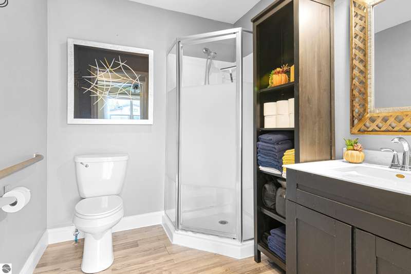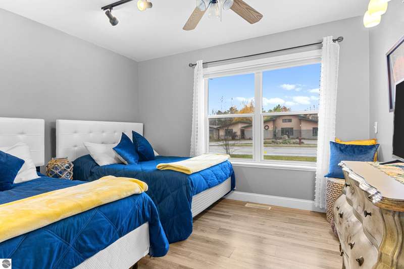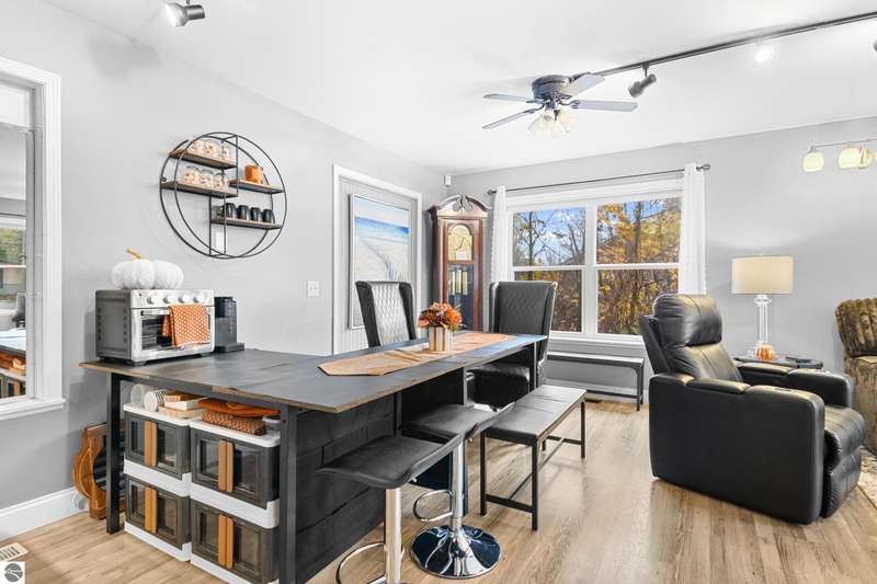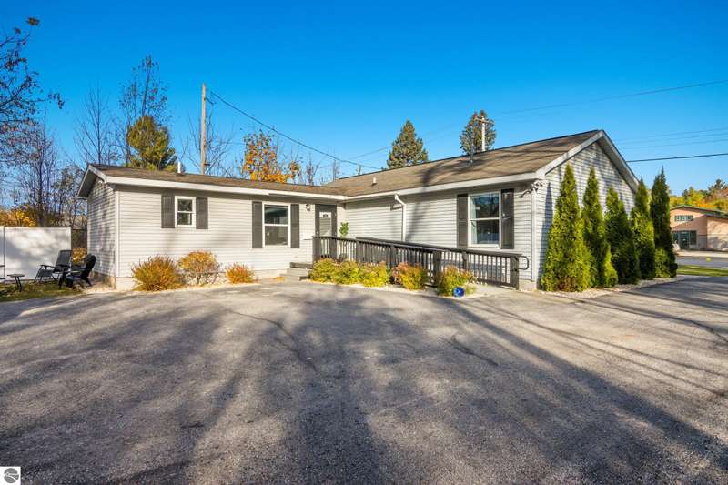 Outstanding investment opportunity in the Village of Elk Rapids. This well-maintained 1,670 sq. ft. multi-use commercial property offers high visibility in a strong traffic corridor with municipal water/sewer, paved parking, and energy-efficient systems, including natural gas forced air heat and central air. it is ideal for office, retail, or a live-work setup, all within walking distance to schools, the grocery store, golf course, and downtown waterfront attractions. The front unit is approximately 1,120 sq. ft. and features 3 bedrooms, 1 bath, and in-unit laundry. It can be used commercially or residentially, creating numerous income strategies for an owner-operator or investor. The back unit is a fully furnished 550 sq. ft. efficiency apartment with 1 bedroom, 3/4 bath, kitchen, and its own washer and dryer. This unit includes an existing short-term rental permit, making it immediately ready for STR income, or it may be used as a long-term rental. Both units can also be reconnected if a future buyer prefers a single-family home layout. Plenty of parking with 10 paved spaces, plus a partially fenced outdoor space in the backyard. The home is both stick-built and BOCA. Two of the bedrooms do not have closets. It has a beautifully landscaped yard with a sprinkler system and drip lines in the flower beds. Proximity to multiple recreation areas adds more appeal: Elk Lake's Rotary Park and boat launch are just one mile south, Damn Beach and East Bay are a mile west with over 1,100 ft. of sandy shoreline, and Bass Lake is one mile north for fishing and outdoor enjoyment. Live, work, rent, or operate -- this versatile investment in a desirable Lake Michigan community checks all the boxes.