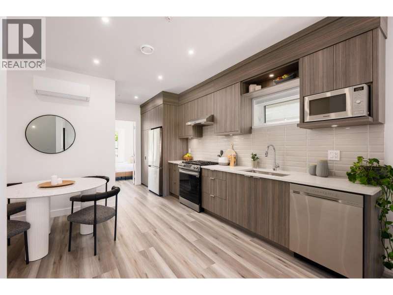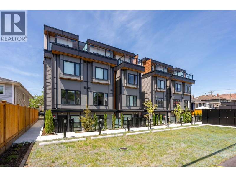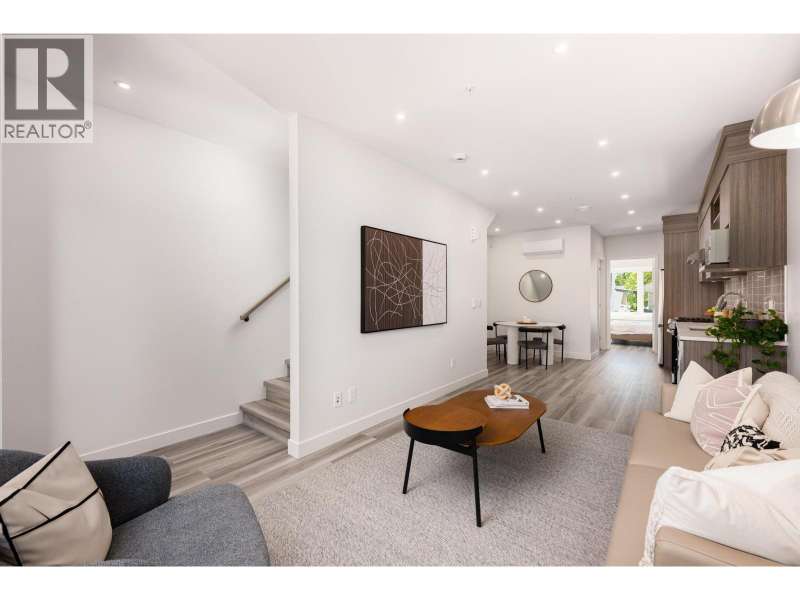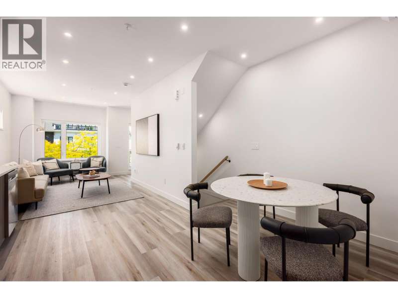 Eligible for First Time Home Buyers GST exemption & PTT exemption! Welcome to your dream family day in this spacious 3-bed + den, 2-bath townhouse inCollingwood. Large windows flood the open floor plan with morning light ,creating a bright, airy atmosphere. A generous 119 sq. ft. terrace & 51 sq. ft. deckprovide year-round outdoor enjoyment. A/C keeps everyone cool, and in-suite laundry adds convenience. The elegant kitchen boasts quartz countertops,stainless steel appliances, and a 5-burner cooktop, while refined bathrooms feature polished fixtures, full-width drawers, and stylish finishes. Secure bikelockers and parking with E V charging offer added convenience. Just steps from Norquay Park and local shops, this 2025-built home perfectly blends family living with a vibrant community. (id:58403)