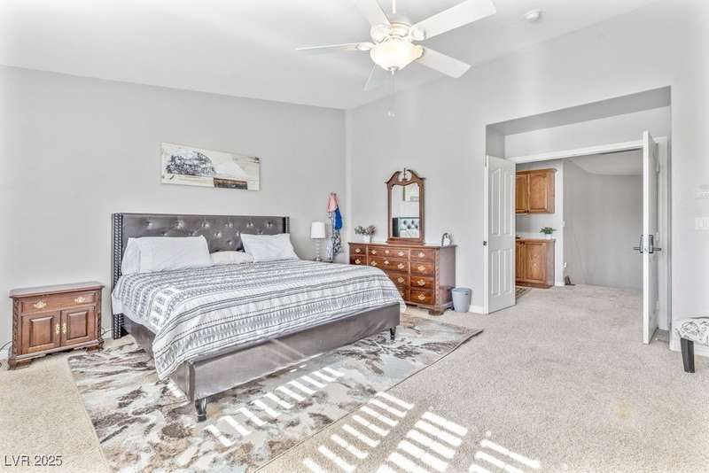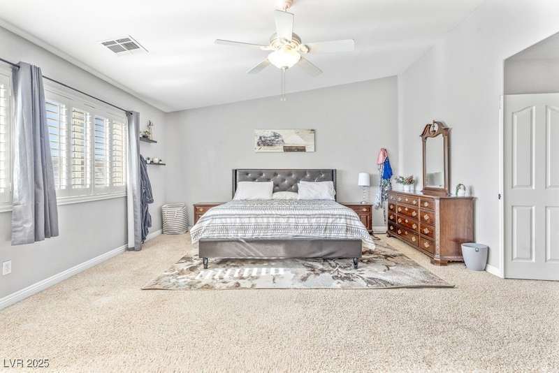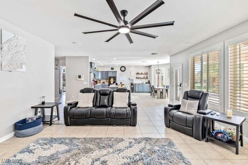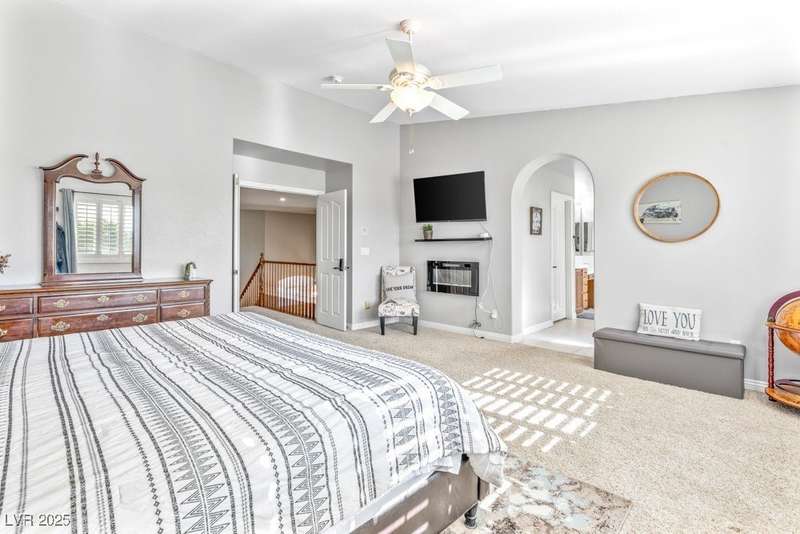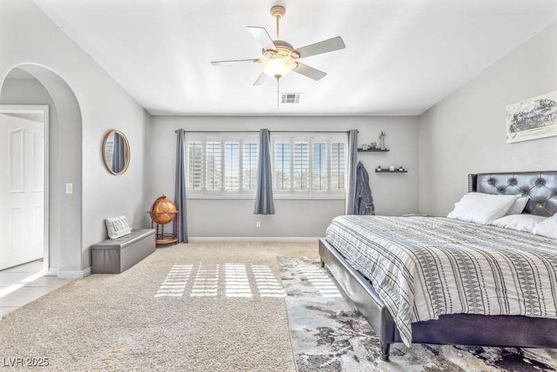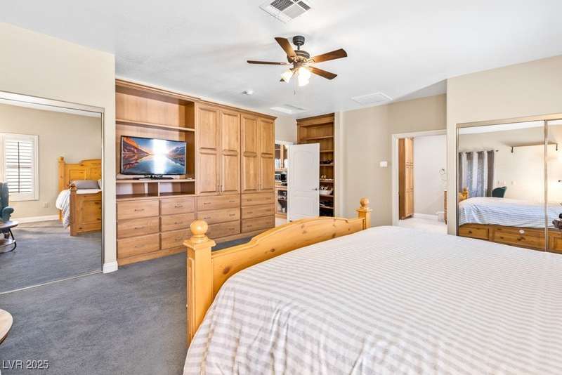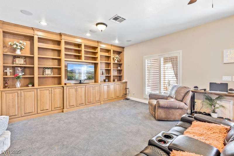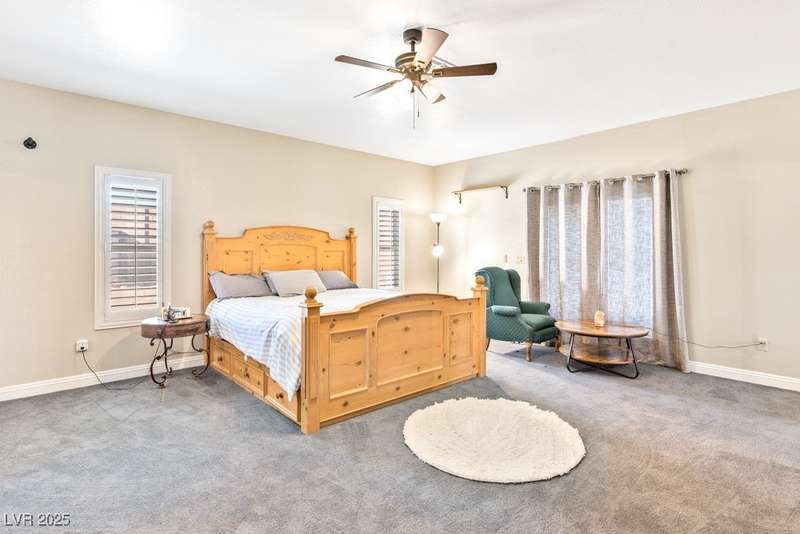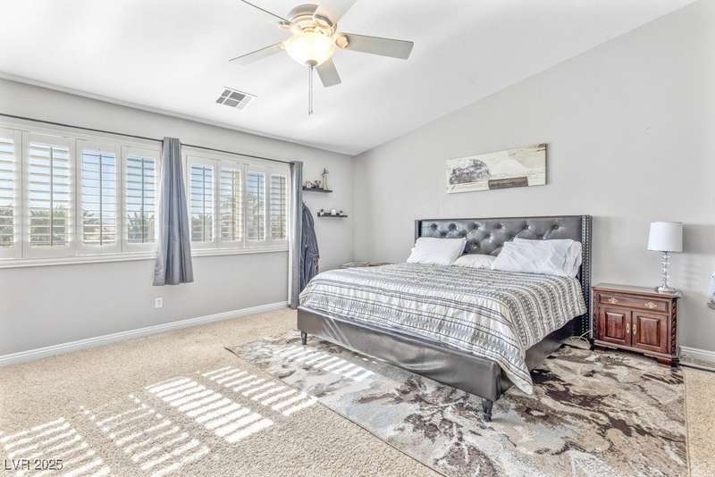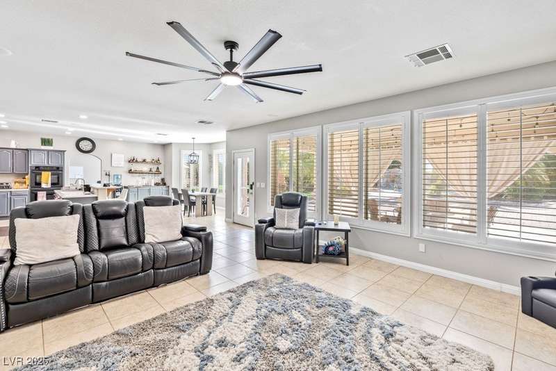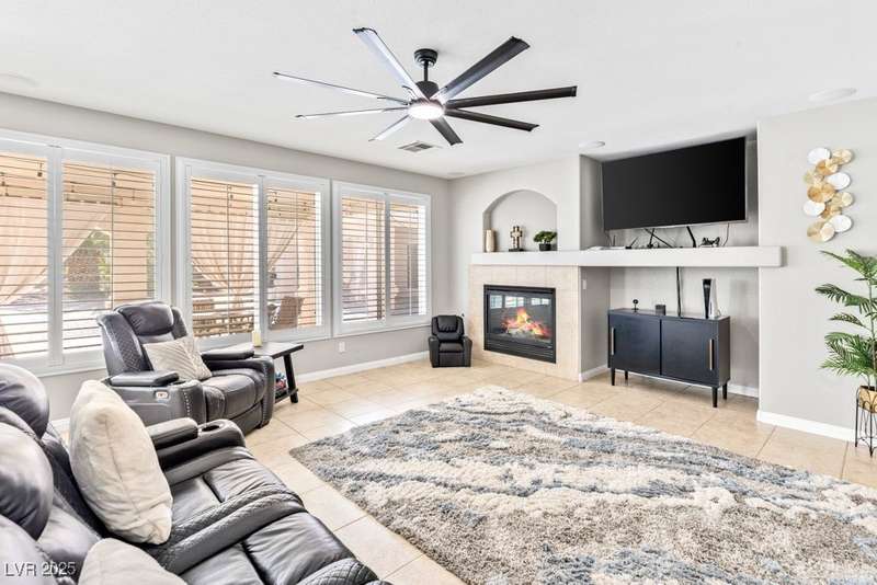 Rare near-1 acre lot with incredible Strip and city views. This property sits on a an oversized pie-shaped corner lot (the largest in the subdivision) and offers everything for true entertaining living. The main house features 6 bedrooms, an open floor plan, plantation shutters, stainless steel appliances, and a large primary suite with a walk-in shower. The separate full-size guest house is ideal for visitors or a mother-in-law suite and includes its own full kitchen, family room, bedroom, and laundry area. Outside, enjoy huge covered patios, light-up gazebos, and a stunning backyard with a waterfall, private cave, and low-maintenance turf. There’s also a massive 5-car garage, RV and boat parking with plenty of room to spare, and open space for entertaining. Sprawling backyard with low-maintenance good looking turf, multiple sitting areas, pool and spa. Rare combination of modern, newer style construction with a very large lot size. Come make this beautiful estate yours today!