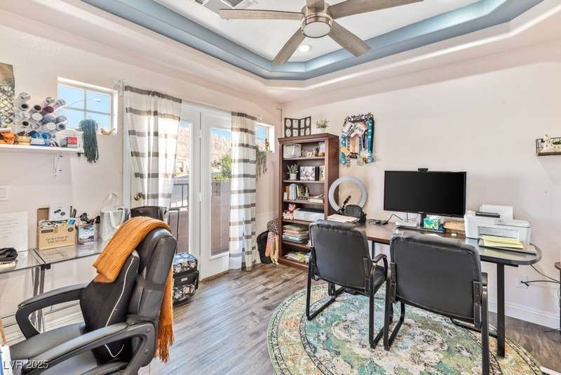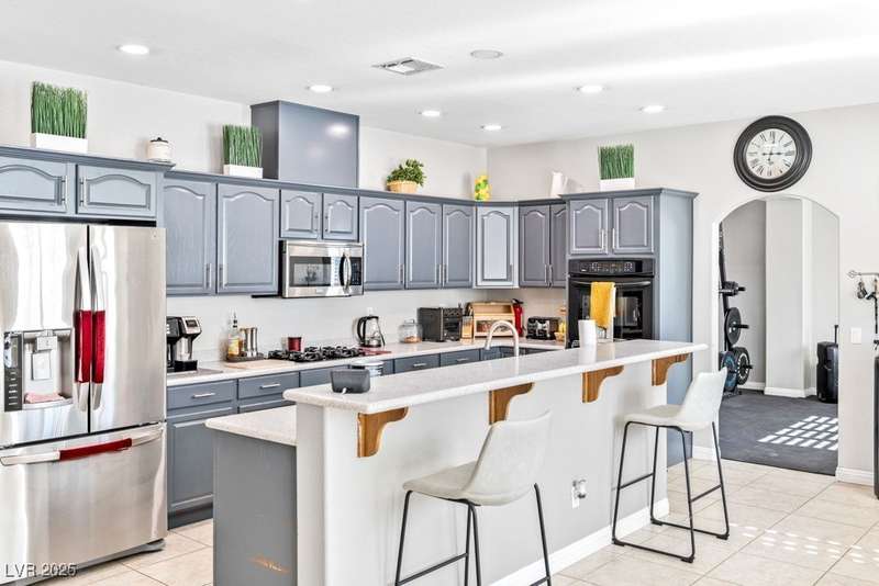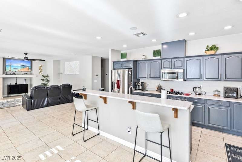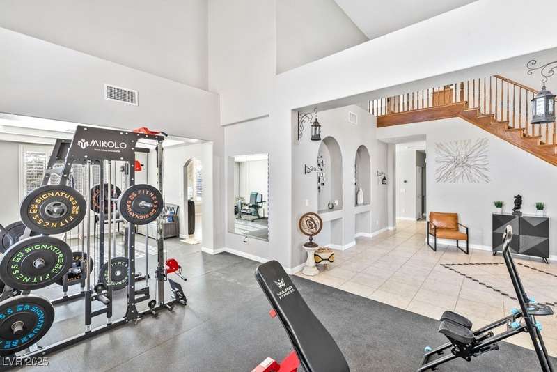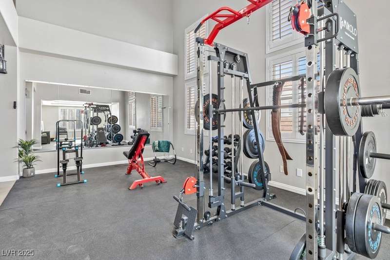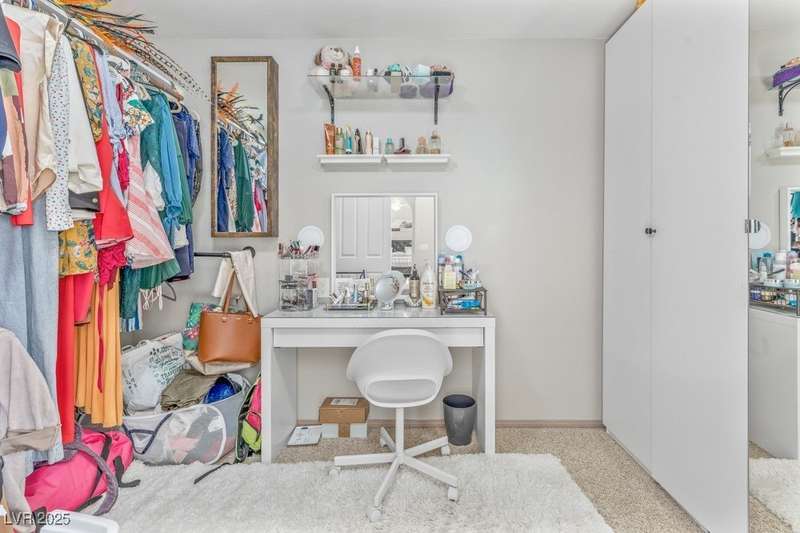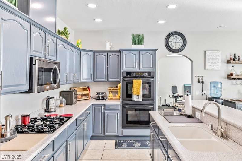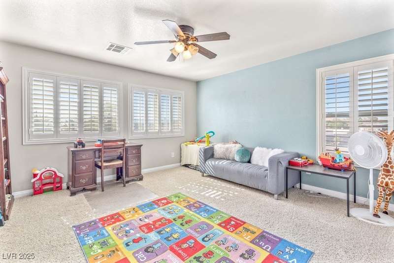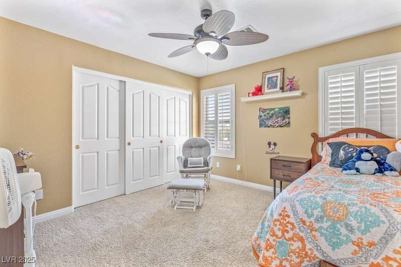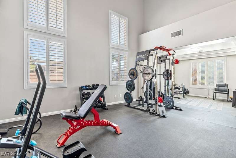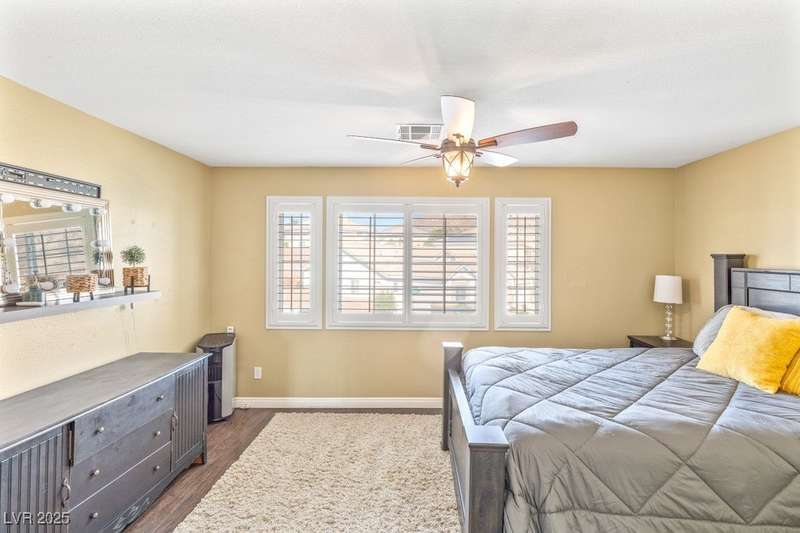 Rare near-1 acre lot with incredible Strip and city views. This property sits on a an oversized pie-shaped corner lot (the largest in the subdivision) and offers everything for true entertaining living. The main house features 6 bedrooms, an open floor plan, plantation shutters, stainless steel appliances, and a large primary suite with a walk-in shower. The separate full-size guest house is ideal for visitors or a mother-in-law suite and includes its own full kitchen, family room, bedroom, and laundry area. Outside, enjoy huge covered patios, light-up gazebos, and a stunning backyard with a waterfall, private cave, and low-maintenance turf. There’s also a massive 5-car garage, RV and boat parking with plenty of room to spare, and open space for entertaining. Sprawling backyard with low-maintenance good looking turf, multiple sitting areas, pool and spa. Rare combination of modern, newer style construction with a very large lot size. Come make this beautiful estate yours today!