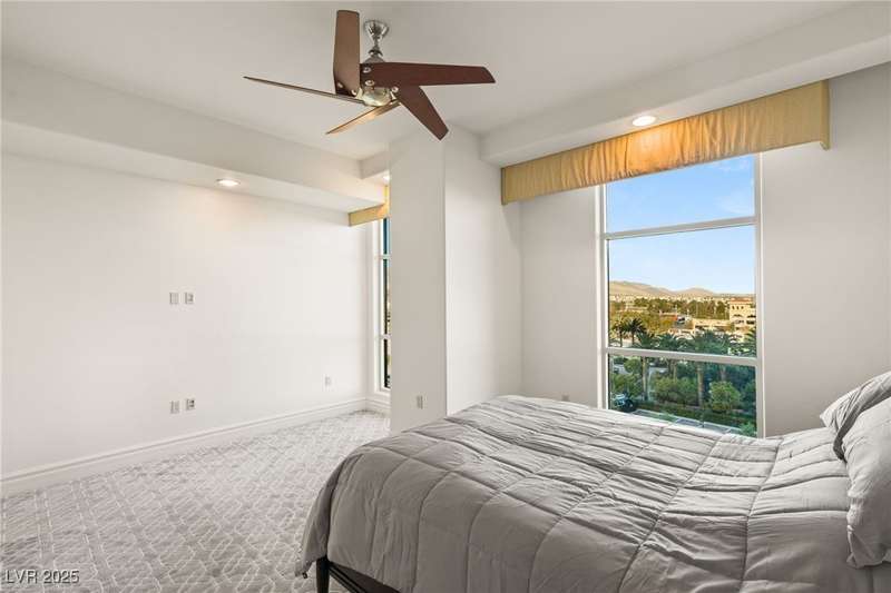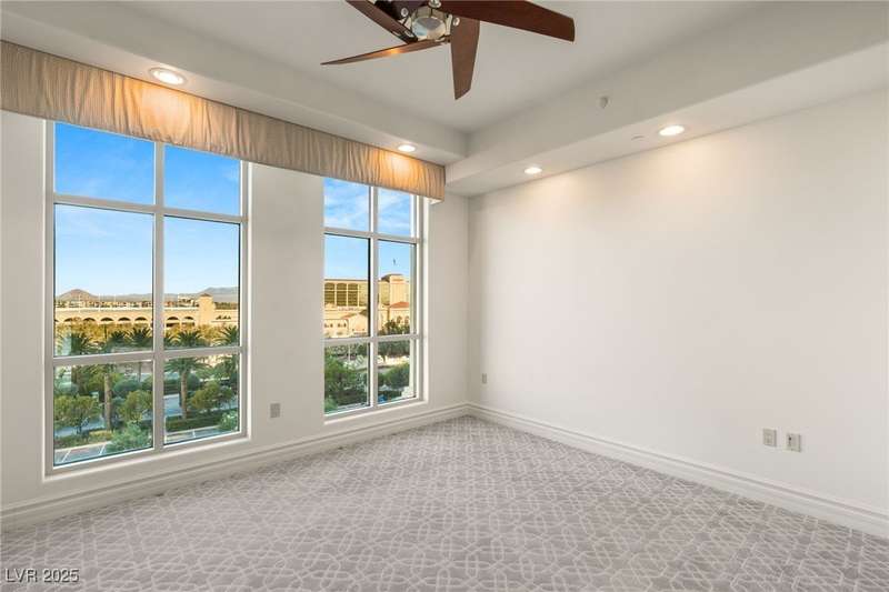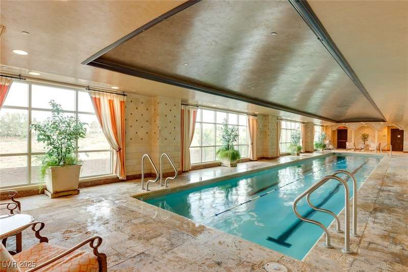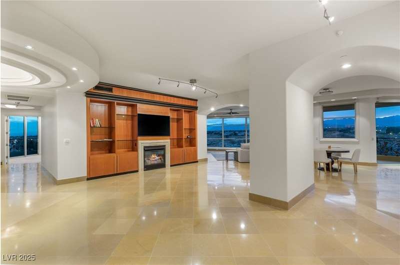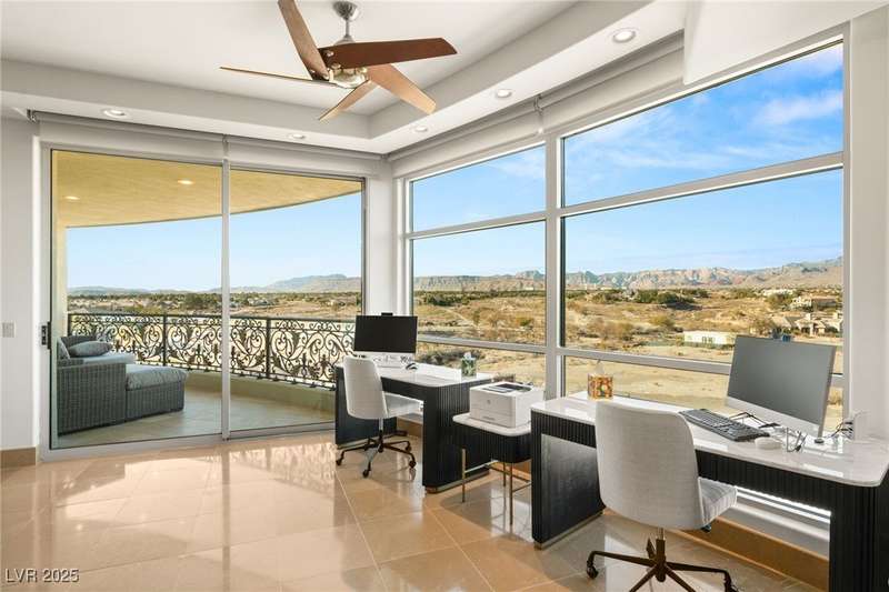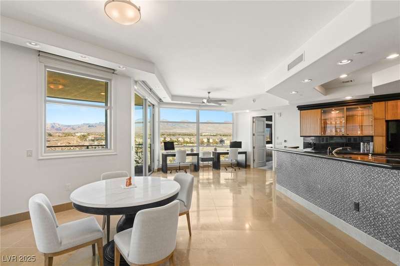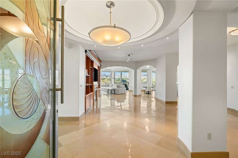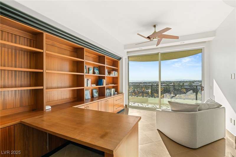 Luxury living at its finest in the prestigious One Queensridge Place. This exceptional high-rise unit offers unparalleled elegance with high end finishes throughout, featuring 4 spacious bedrooms, including a primary suite with dual his-and-her en suites, 6 luxurious bathrooms, and 2 dens and/or office with built-ins. Step into the gourmet kitchen with top-of-the-line Viking appliances, a large walk-in pantry, and access to a formal dining room with an attached wine room. Relax on one of the two private terraces while enjoying breathtaking views of the city, Strip, and surrounding mountains from every room. This guard-gated community offers unmatched amenities, including concierge services, 24-hour security, a barista lounge, indoor and outdoor pools, a world-class spa and fitness center, a private theater, a poker room, and more. With a 3 car garage under the building, private elevator direct to the unit, and an unbeatable location, this property is the epitome of palatial living.