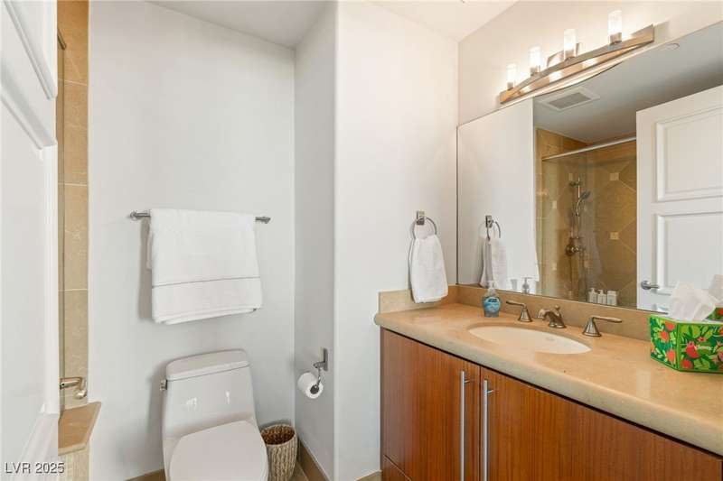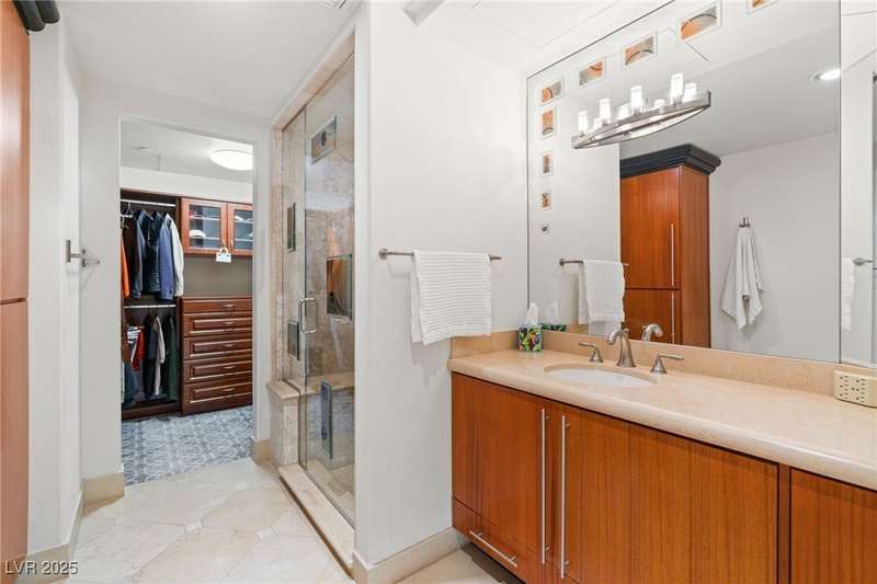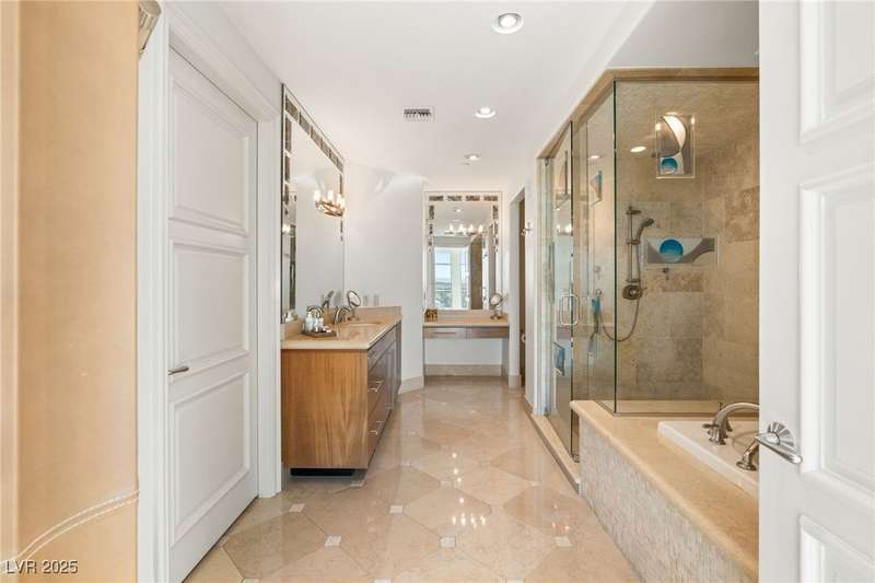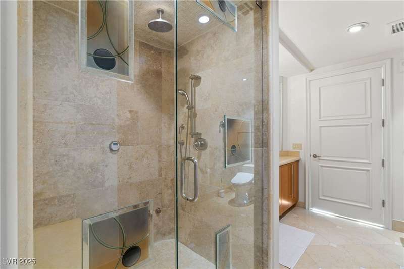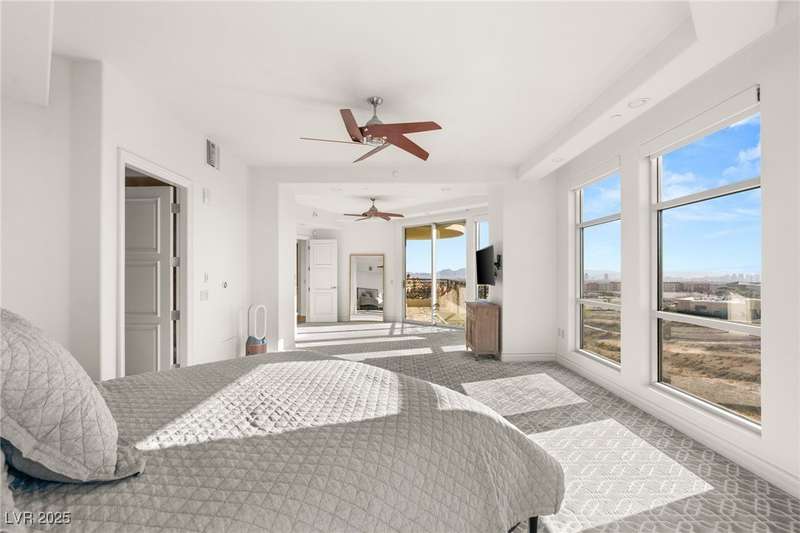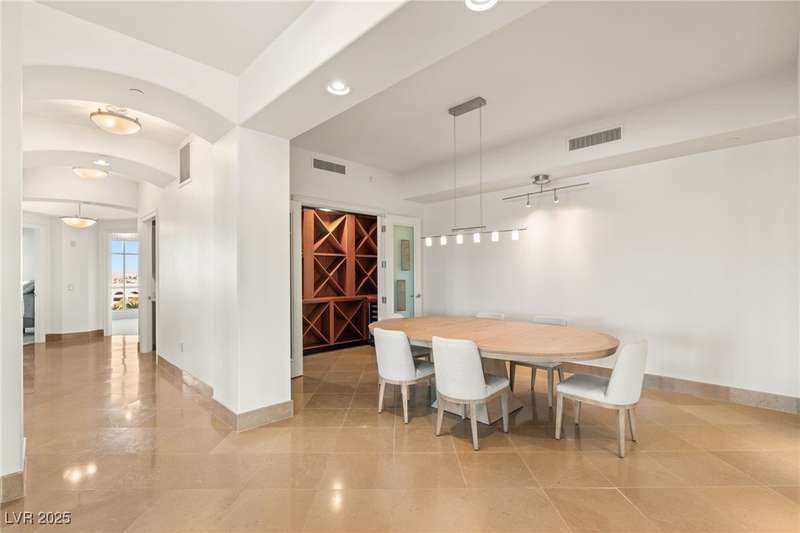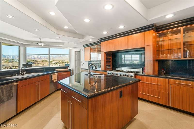 Luxury living at its finest in the prestigious One Queensridge Place. This exceptional high-rise unit offers unparalleled elegance with high end finishes throughout, featuring 4 spacious bedrooms, including a primary suite with dual his-and-her en suites, 6 luxurious bathrooms, and 2 dens and/or office with built-ins. Step into the gourmet kitchen with top-of-the-line Viking appliances, a large walk-in pantry, and access to a formal dining room with an attached wine room. Relax on one of the two private terraces while enjoying breathtaking views of the city, Strip, and surrounding mountains from every room. This guard-gated community offers unmatched amenities, including concierge services, 24-hour security, a barista lounge, indoor and outdoor pools, a world-class spa and fitness center, a private theater, a poker room, and more. With a 3 car garage under the building, private elevator direct to the unit, and an unbeatable location, this property is the epitome of palatial living.